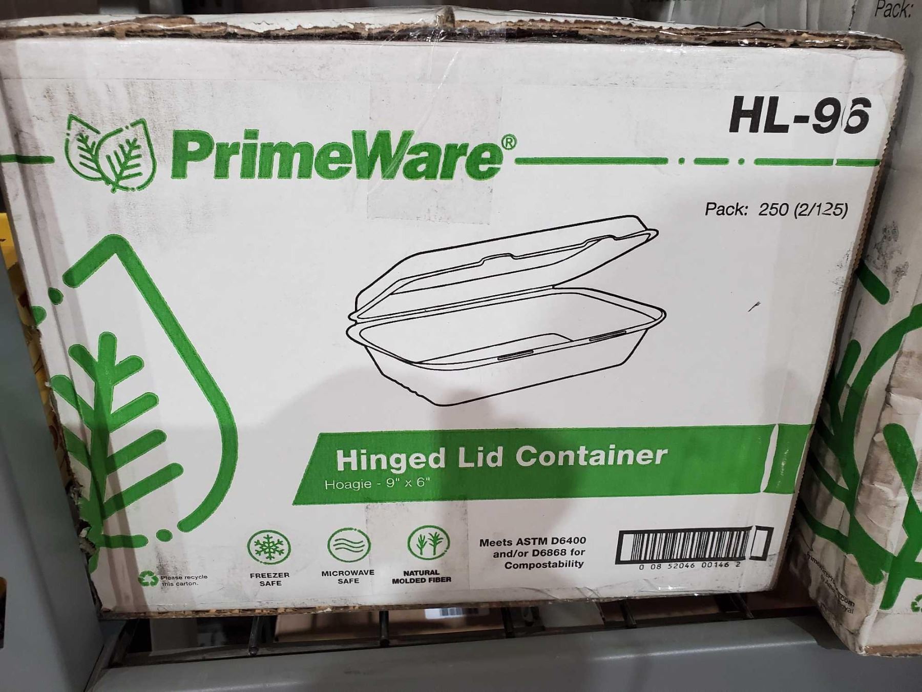 CASE LOT Prime wear hinged lid takeout container 9" by 6" lot of 250