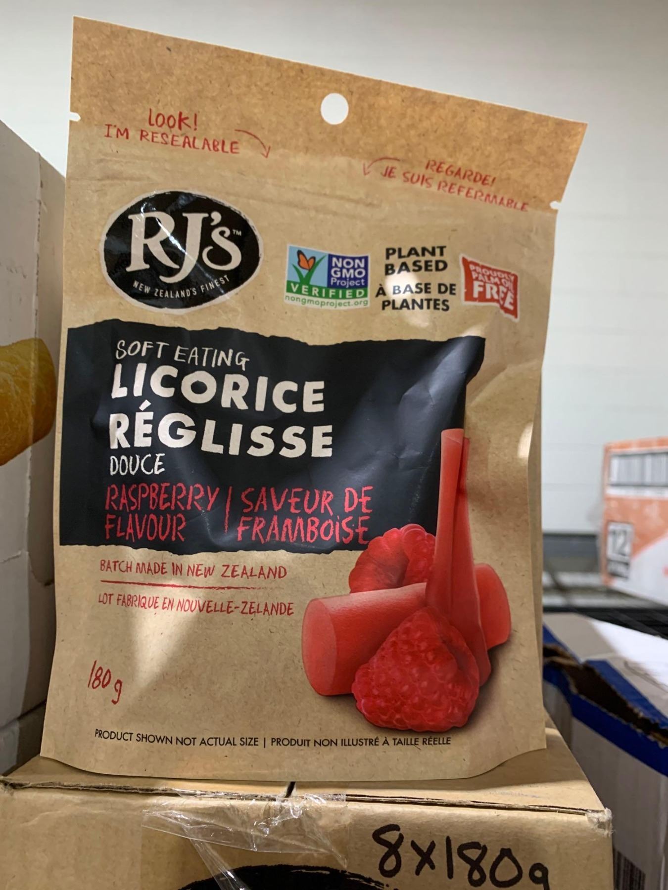 CASE LOT Rj's raspberry Licorice 8 x 180g