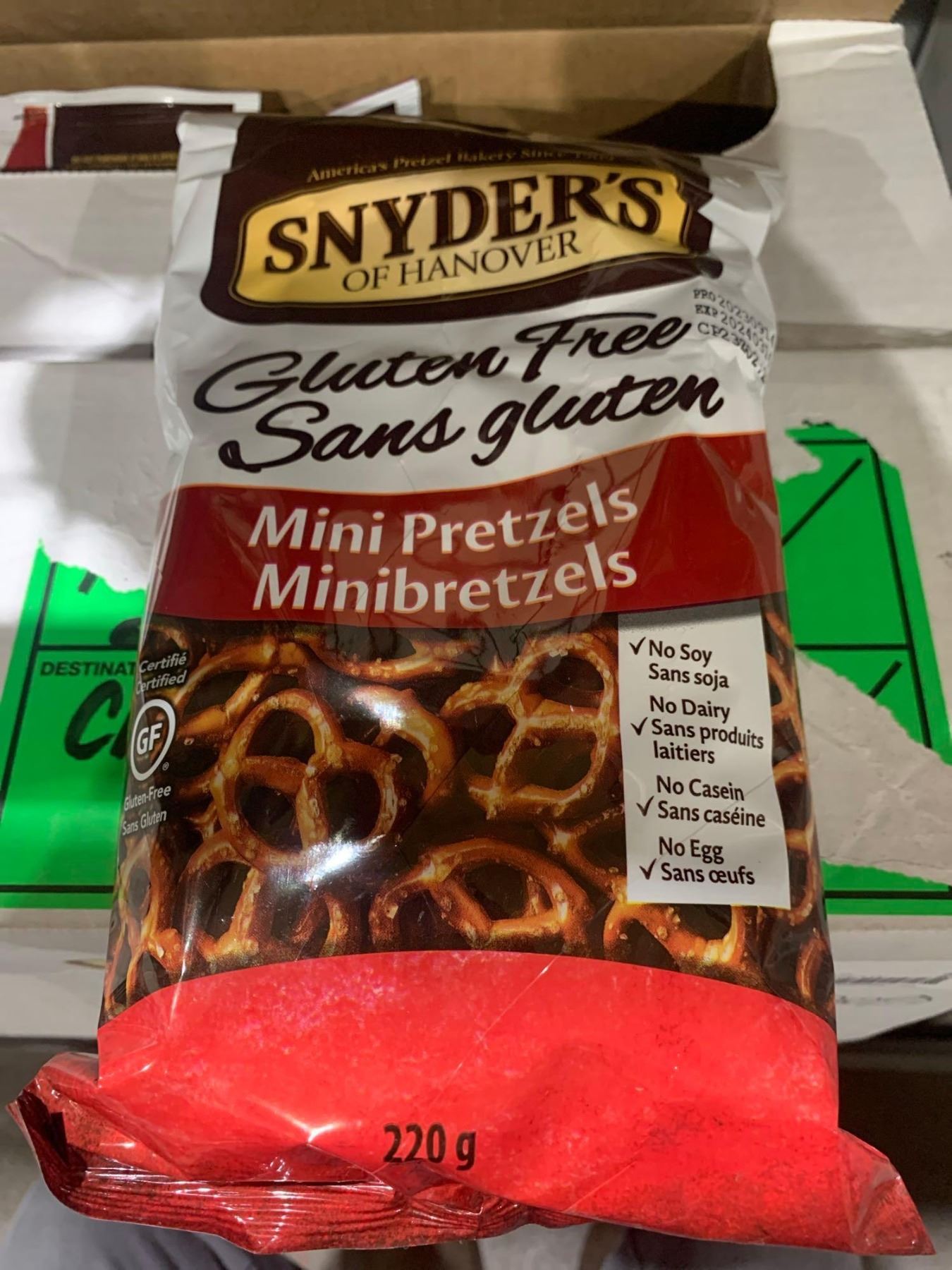 CASE LOT - Snyders gluten free mini pretzels 12x220g