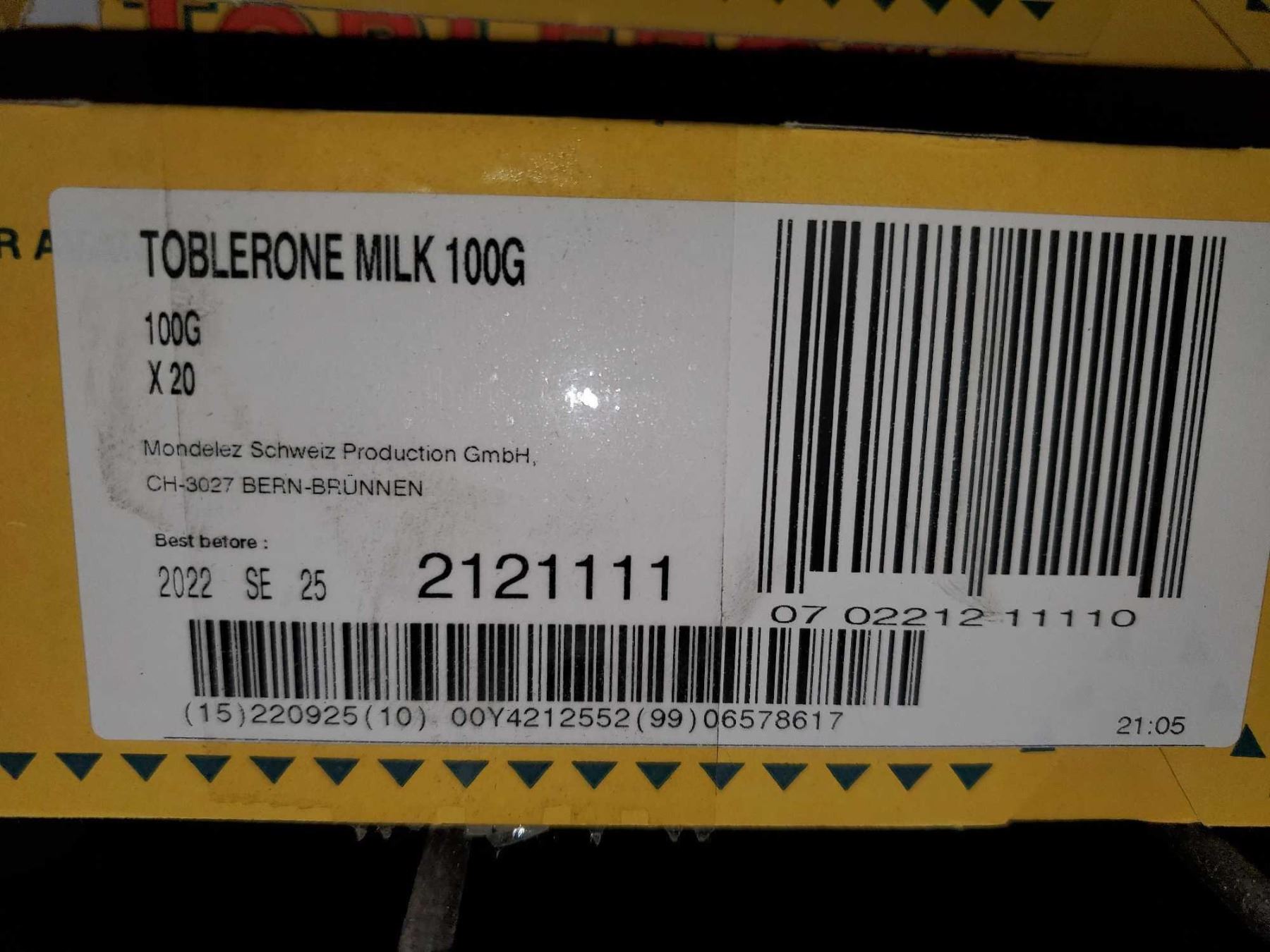 CASE LOT Toblerone Swiss Chocolate Candy Bars 20x100g