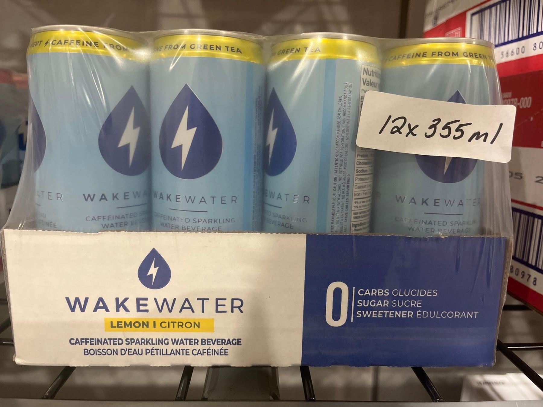CASE LOT- Wake Water Lemon Caffeinated Sparking Water Beverage 12x355mL
