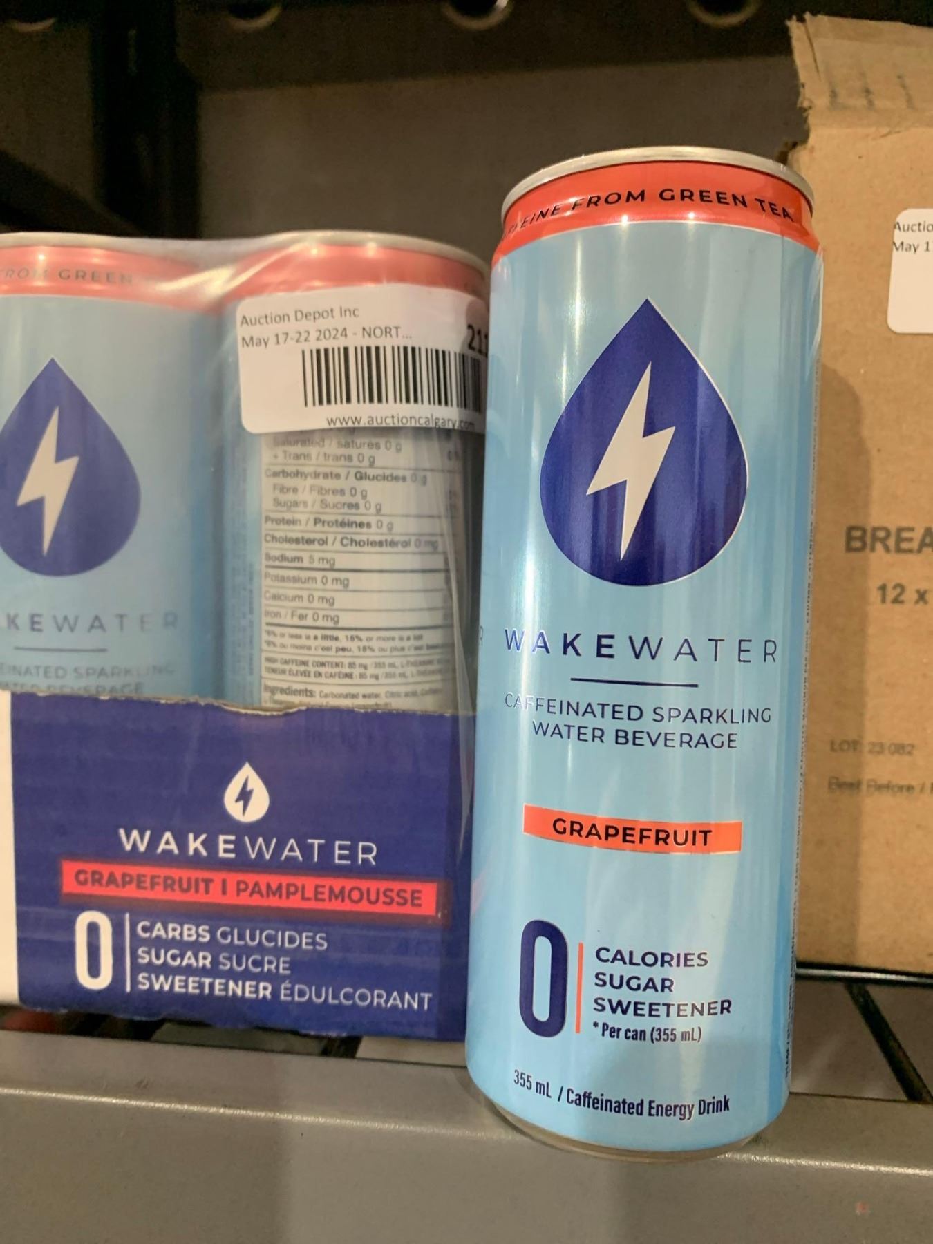 CASE LOT - Wake Water grapefruit flavoured caffeinated sparkling water beverage 12x355ml