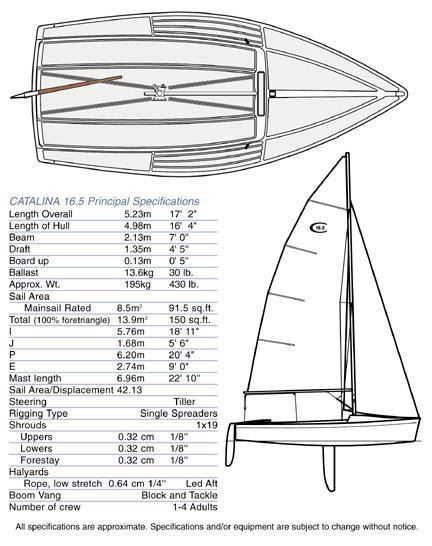 CATALINA 16.5 SAILBOAT WITH TRAILER - specs: 5.23M L, 4.98 Beam, 195KG, includes Trailer, sail , rig