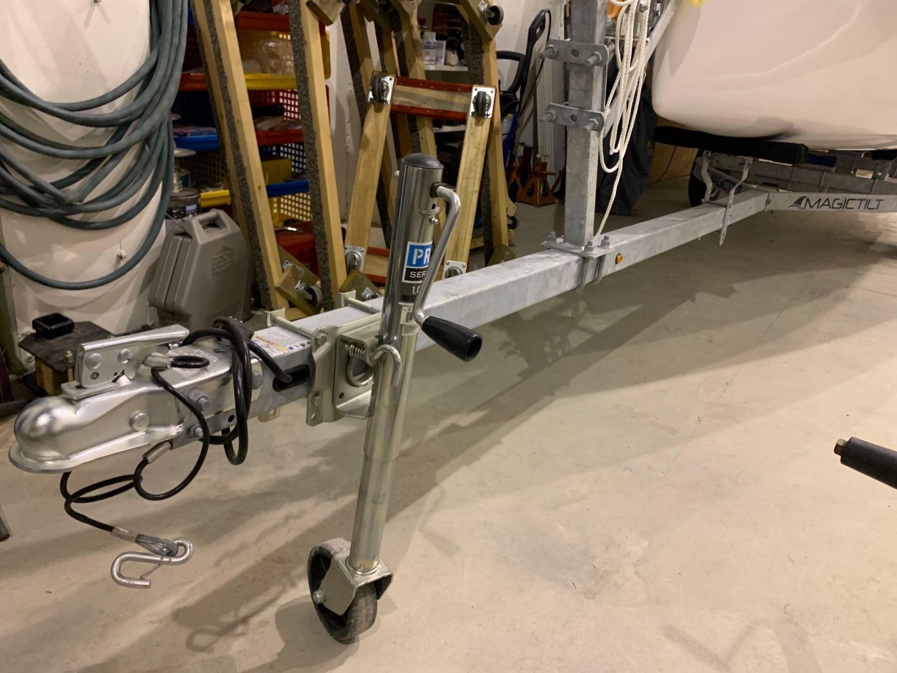 Adjustable Hiking StrapsTrailer Bow EyeFiberglass Composite CenterboardStainless Steel Standing RiggingDacron Running RiggingForward Storage CompartmentRoller Furling Jib with Furler Unit, UV Protection Leach and FootFive Year Gel Coast Blister Protection * (2)Mainsail, Dacron WhiteJib, Dacron WhiteOne Piece Fiberglass Hull, WhiteOne Piece Fiberglass Deck, WhiteMolded-in Non-skid SurfaceTiller ExtensionAdjustable Hiking StrapsBoom Vang, AdjustableSelf-Bailing CockpitAdjustable OuthaulBarney Post with Ratchet Cam CleatAnodized Mast and BoomCunningham