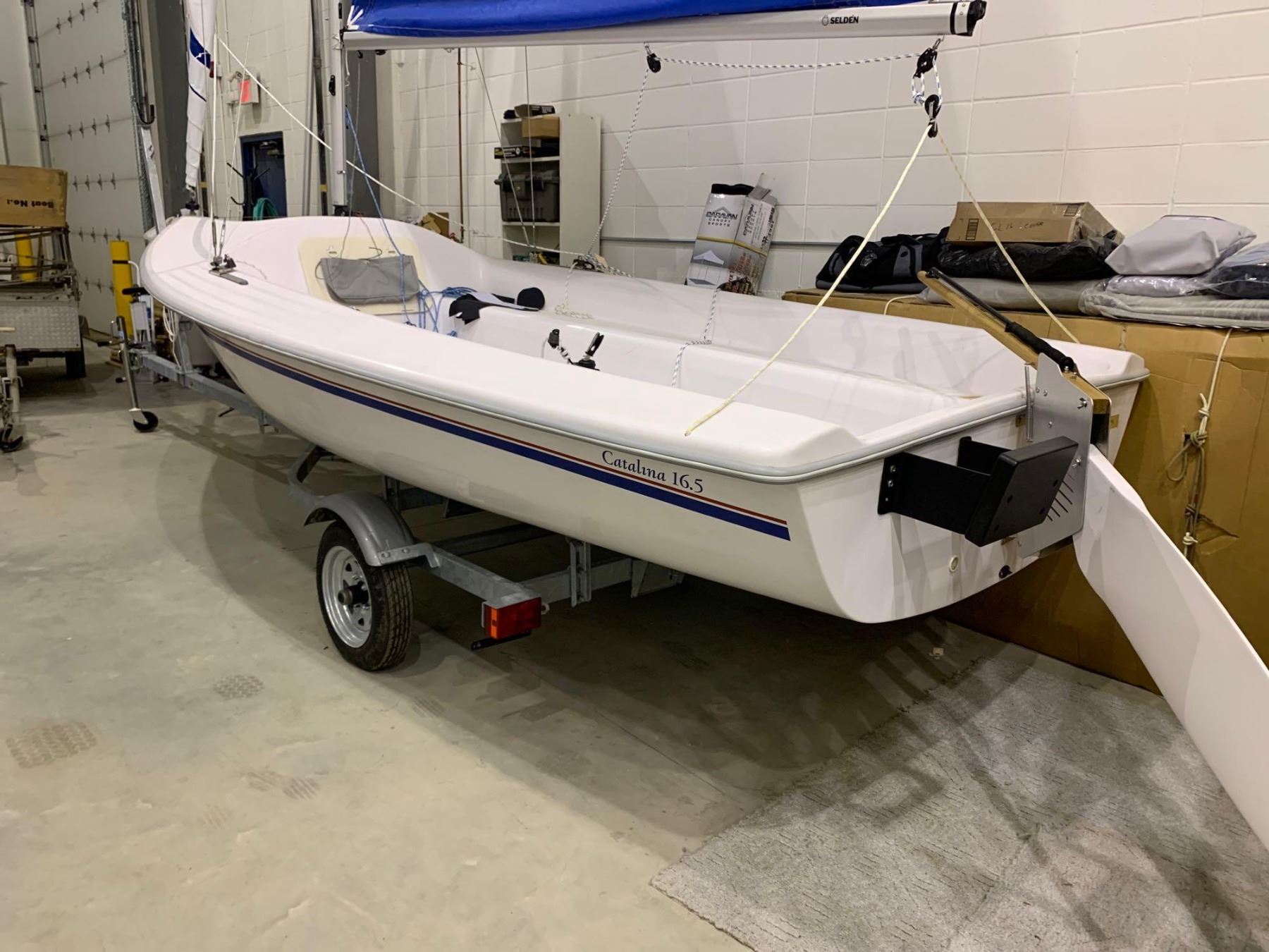 CATALINA 16.5 SAILBOAT WITH TRAILER - specs: 5.23M L, 4.98 Beam, 195KG, includes Trailer, sail , rigging and all accessories as pictured - NEW IN SHOWROOM  OPTIONS: Outboard Bracket, Kickup Rudder, Package A Colored Sail & Whisker Pole  see additional description for more info