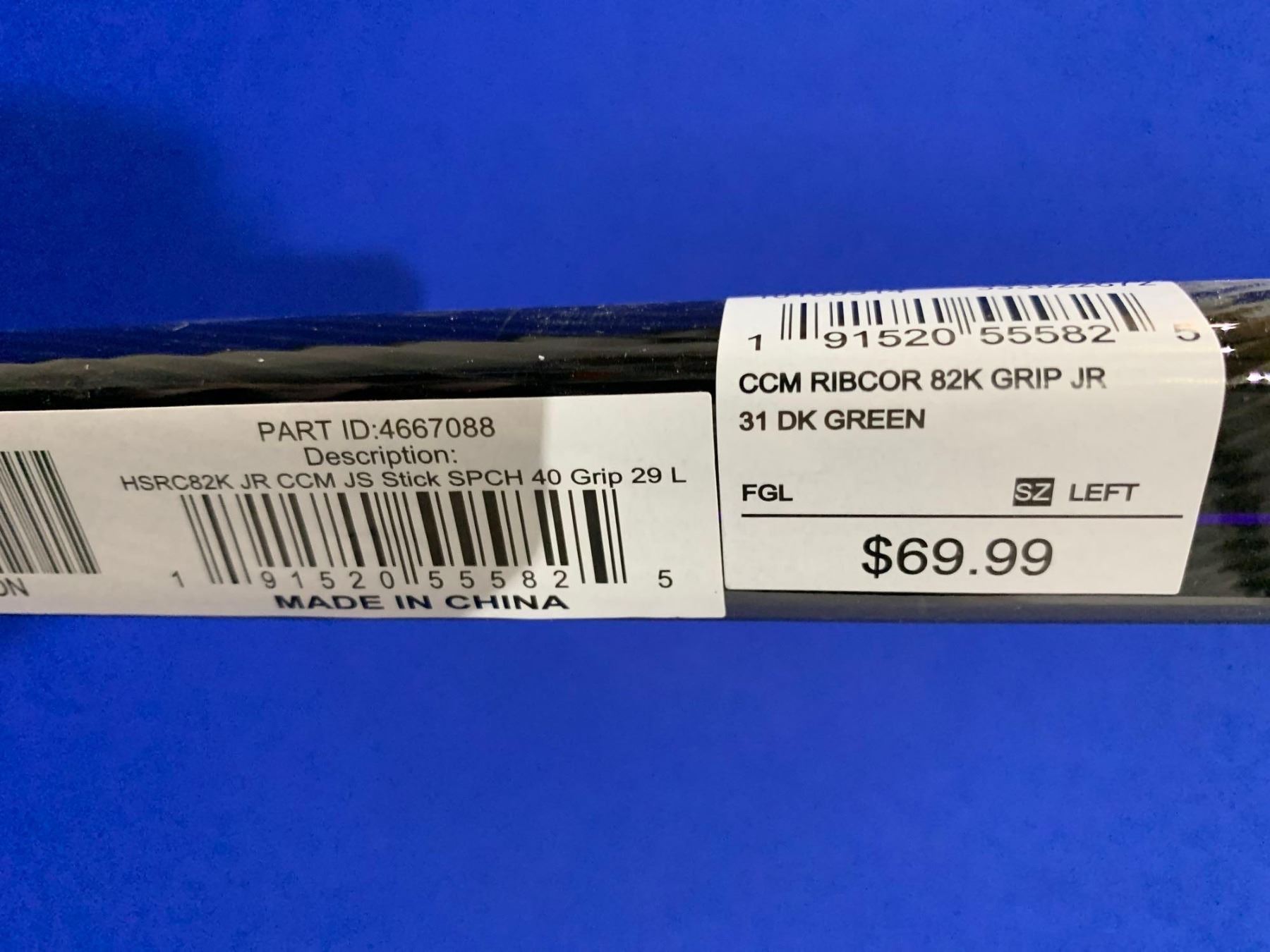 CCM Ribcor 82K Grip Jr. 31 Dark Green Hockey Stick, Left