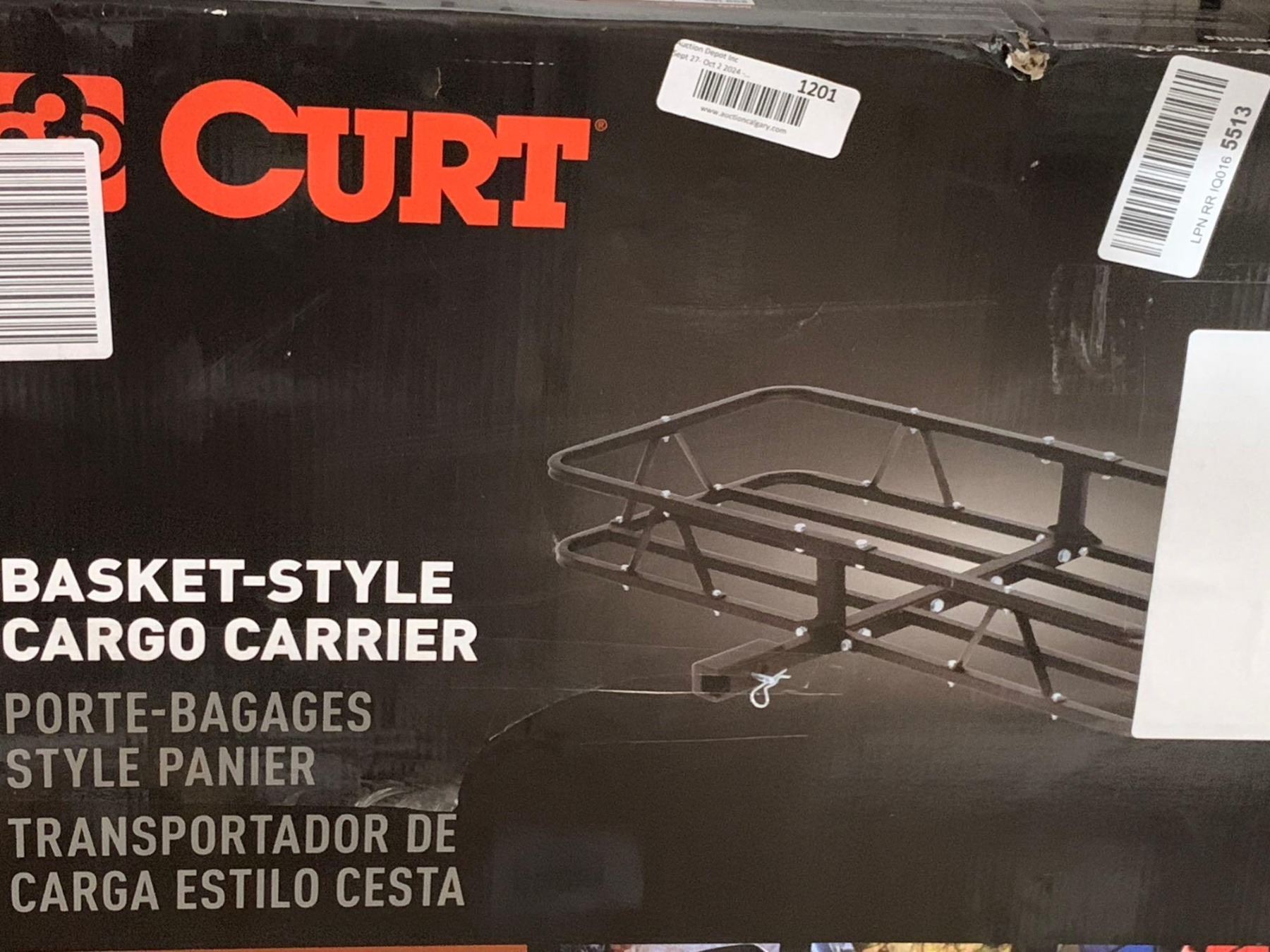CURT 18145 48 x 20-Inch Basket Hitch Cargo Carrier, 500 lbs Capacity, Black Steel, 1-1/4, 2-in Adapt