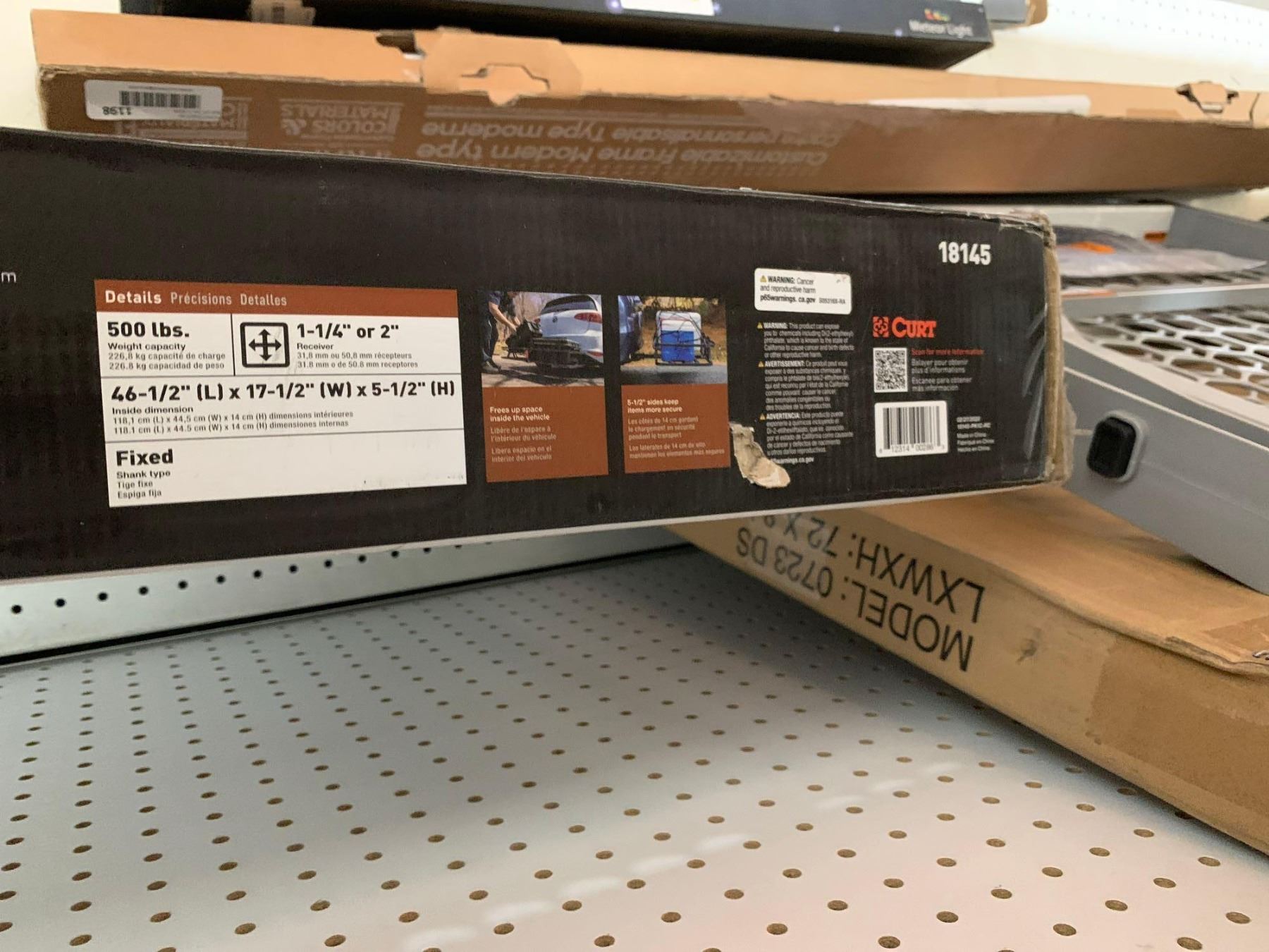 CURT 18145 48 x 20-Inch Basket Hitch Cargo Carrier, 500 lbs Capacity, Black Steel, 1-1/4, 2-in Adapter Shank