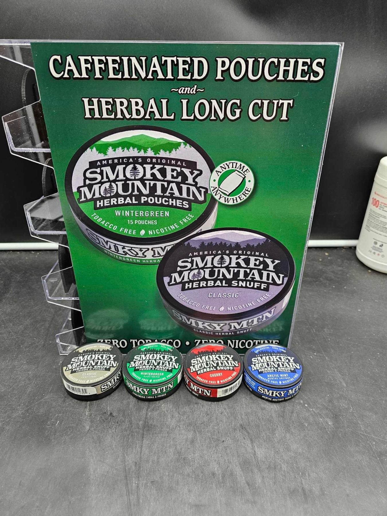 Caffeinated Pouches & Herbal Long Cut Smokey Mountain 4pk Assorted Pouches, Tobacco & Nicotine Free