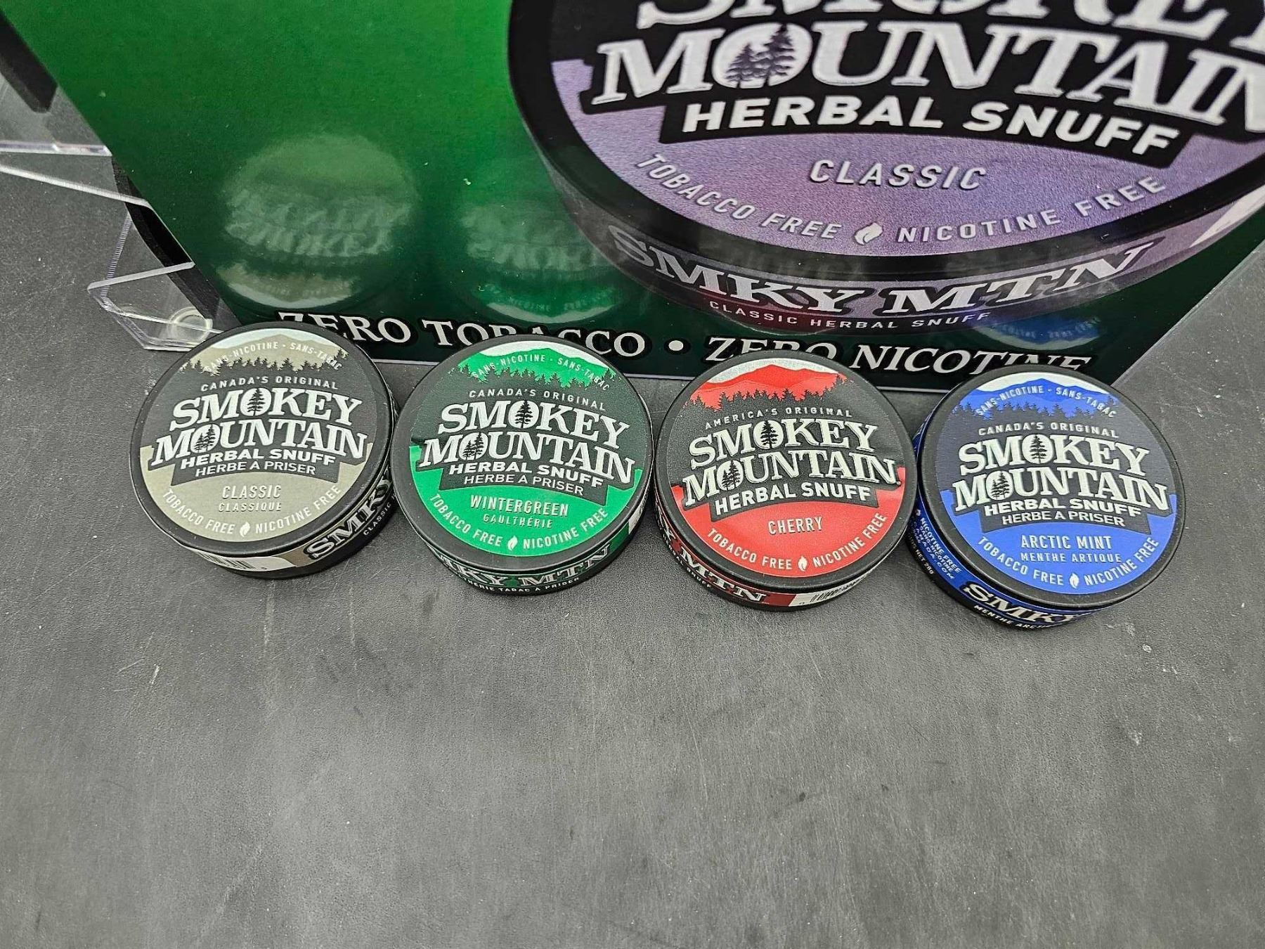 Caffeinated Pouches & Herbal Long Cut Smokey Mountain 4pk Assorted Pouches, Tobacco & Nicotine Free