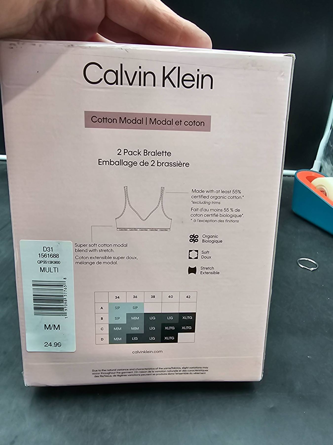 Calvin Klein 2 Pack Bralette Cotton Modal Blend Medium