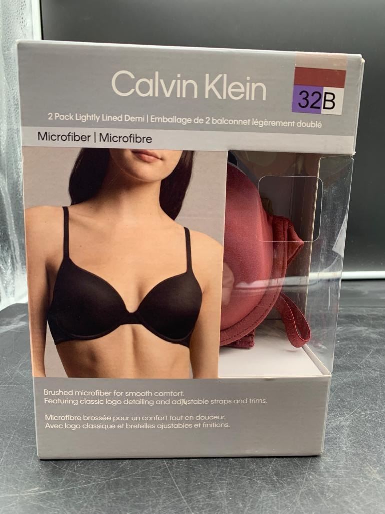 Calvin Klein 2 Pack Lightly Lined Demi Microfiber Bras, 32B, Black and Red