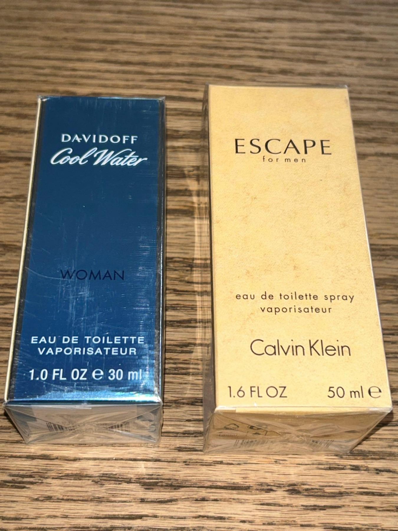 Calvin Klein Escape 50ml and Davidoff Cool Waters 30 ml - LOT of 2