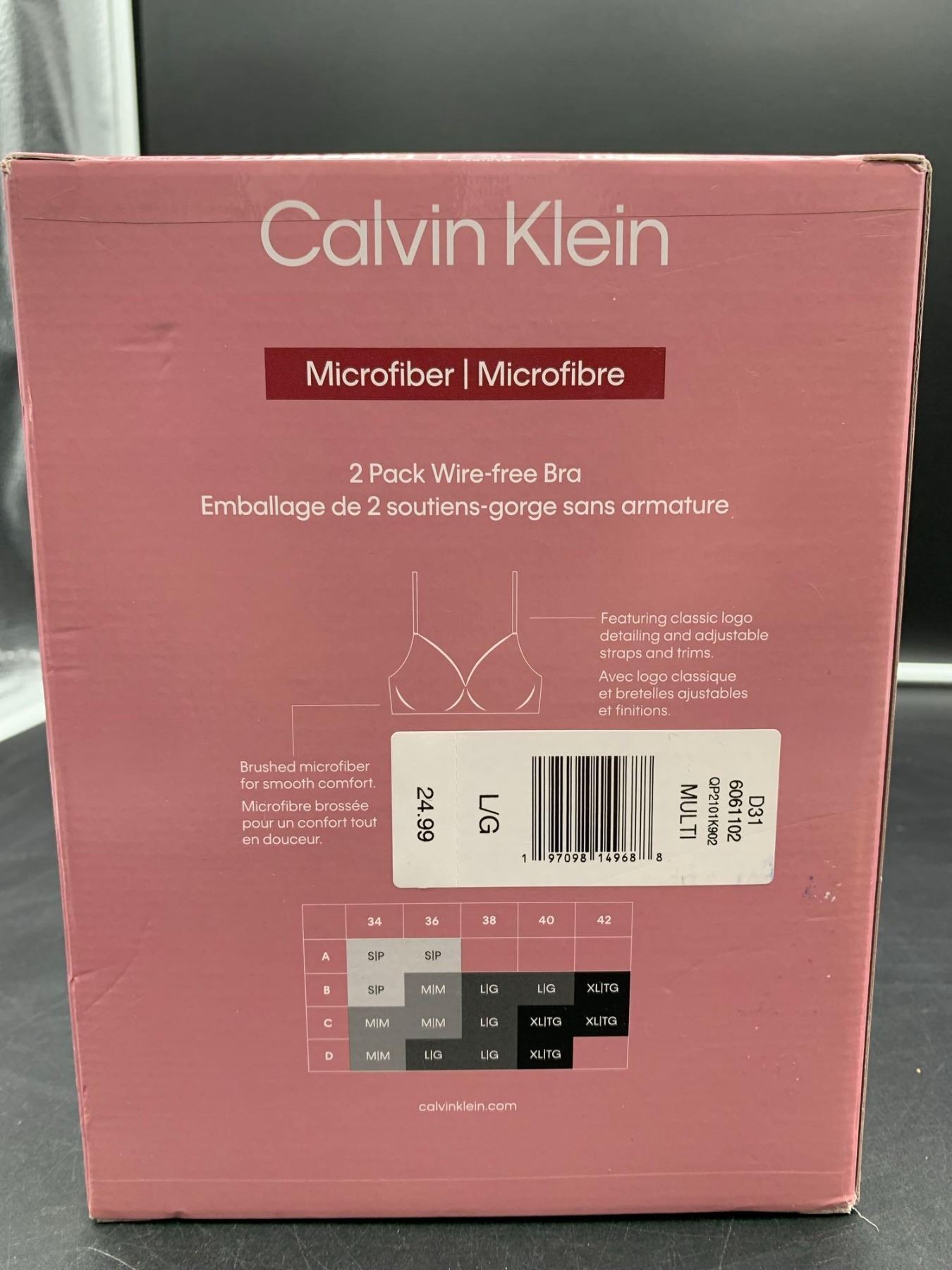 Calvin Klein Microfiber 2pk Wire-Fee Bra (L)