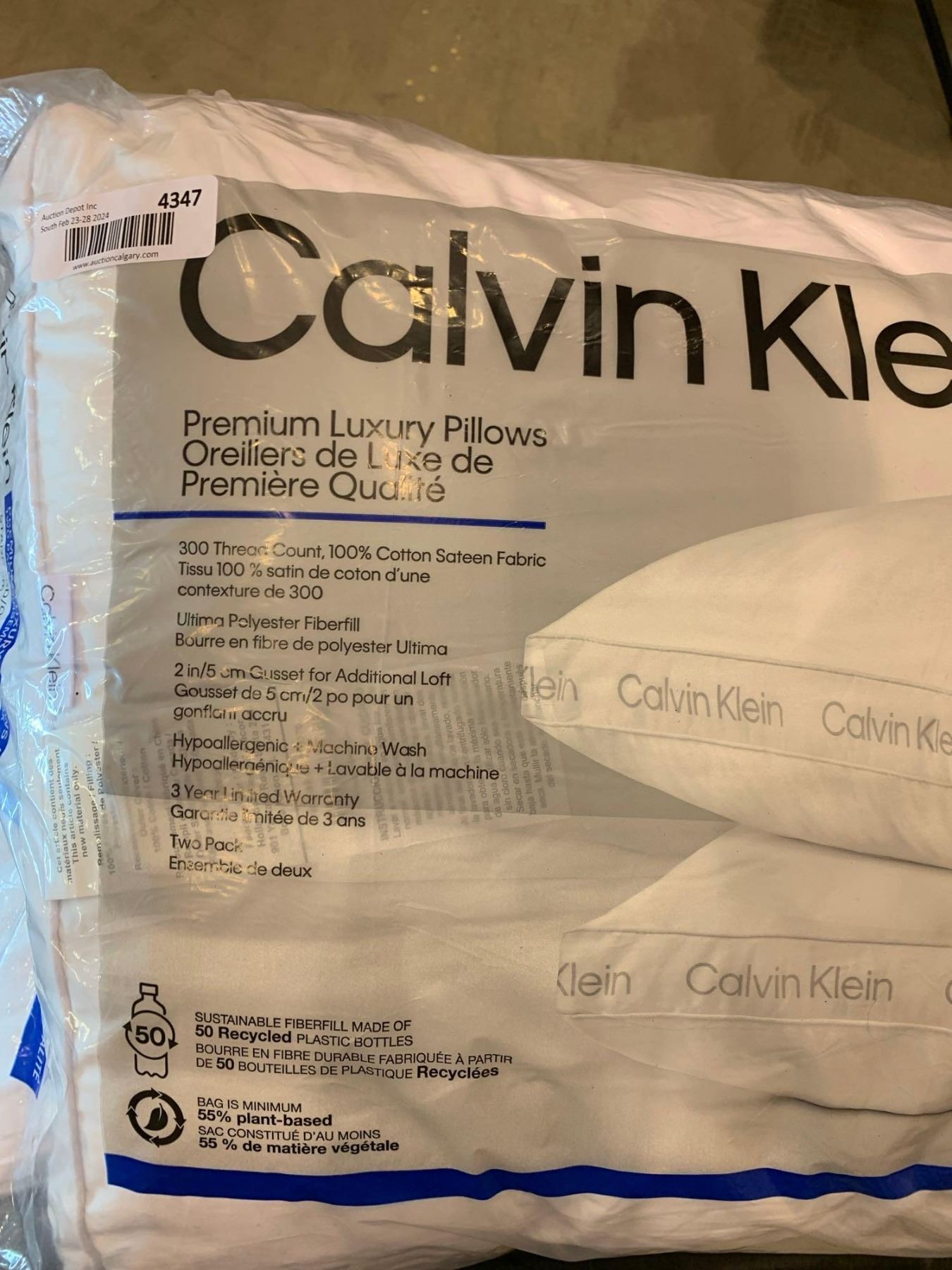 Calvin Klein premium luxury pillows, queen size pack of 2
