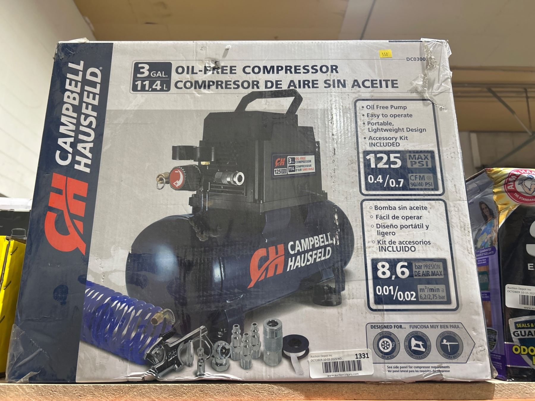 Campbell Hausfeld 3 Gallon Oil-Free Air Compressor with Accessories