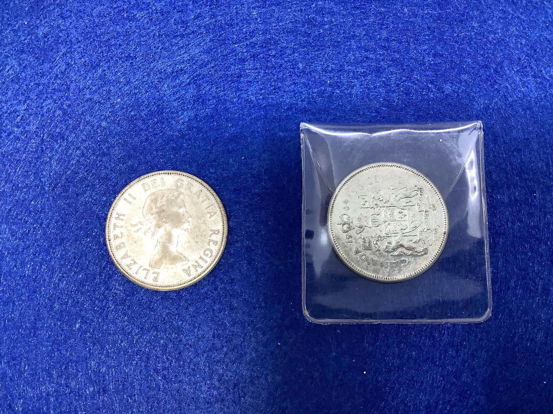 Canada 1960 & 1964 Silvr $.50 cent Coins lot of 2