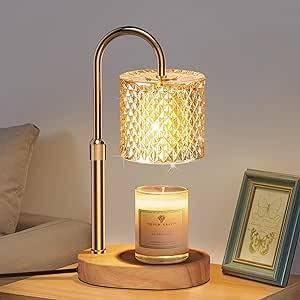 Candle Warmer Lamp with Crystal Shade and Wooden Base