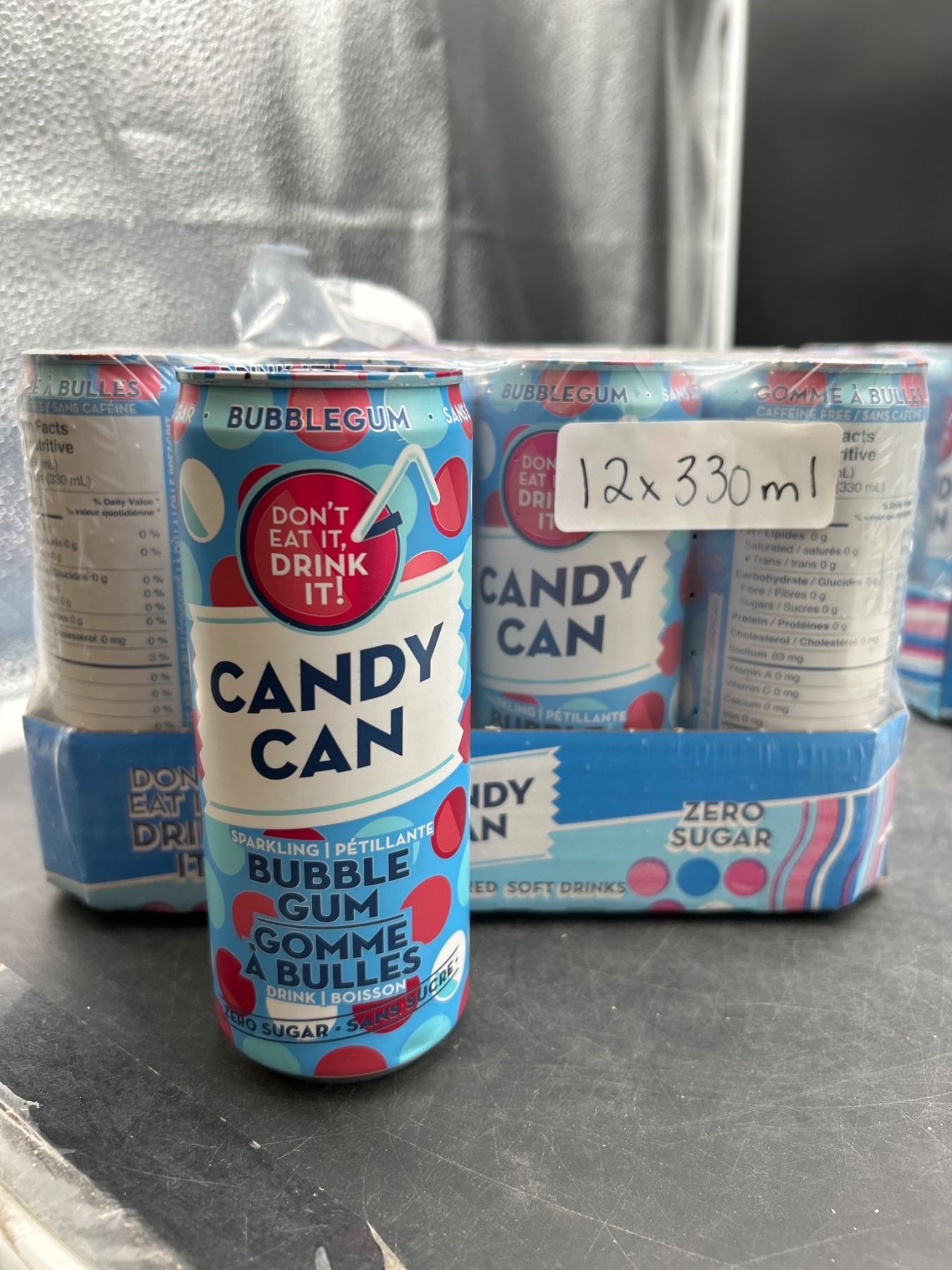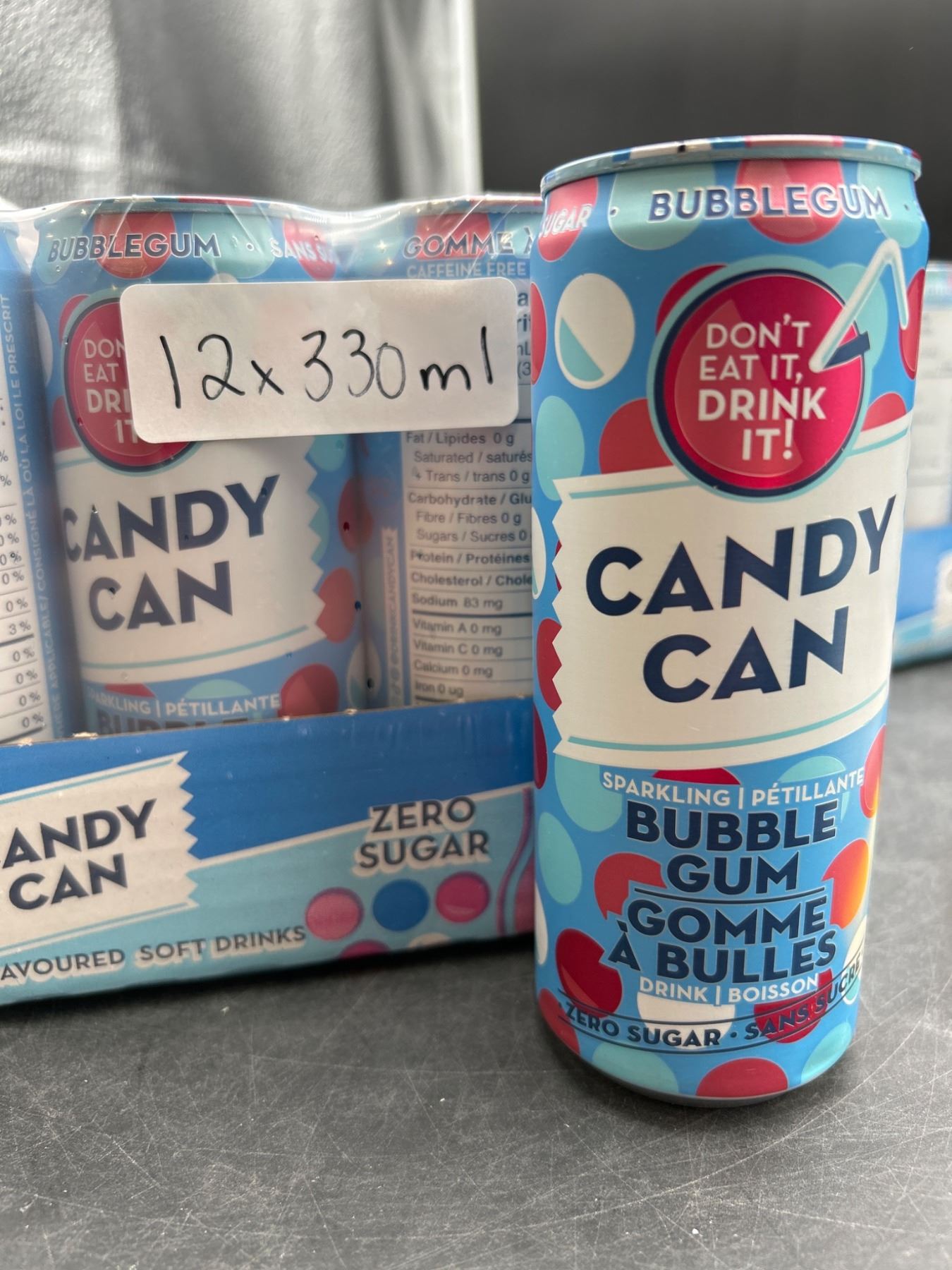 Candy Can Bubble Gum Flavored Sparkling Soft Drinks 330ml, Pack of 12