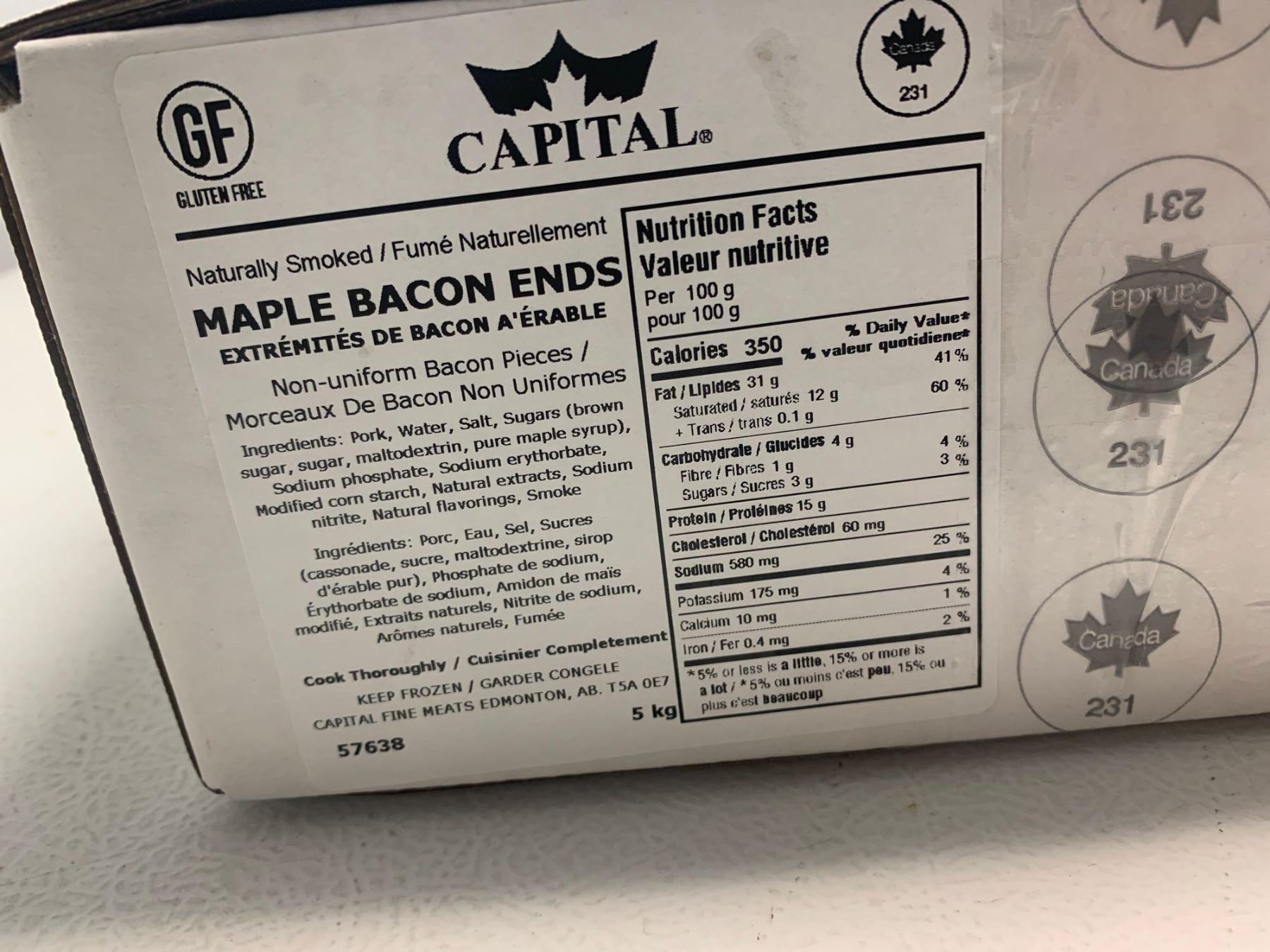 Capital Meats Naturally Smoked Maple Bacon Ends 5KG Case
