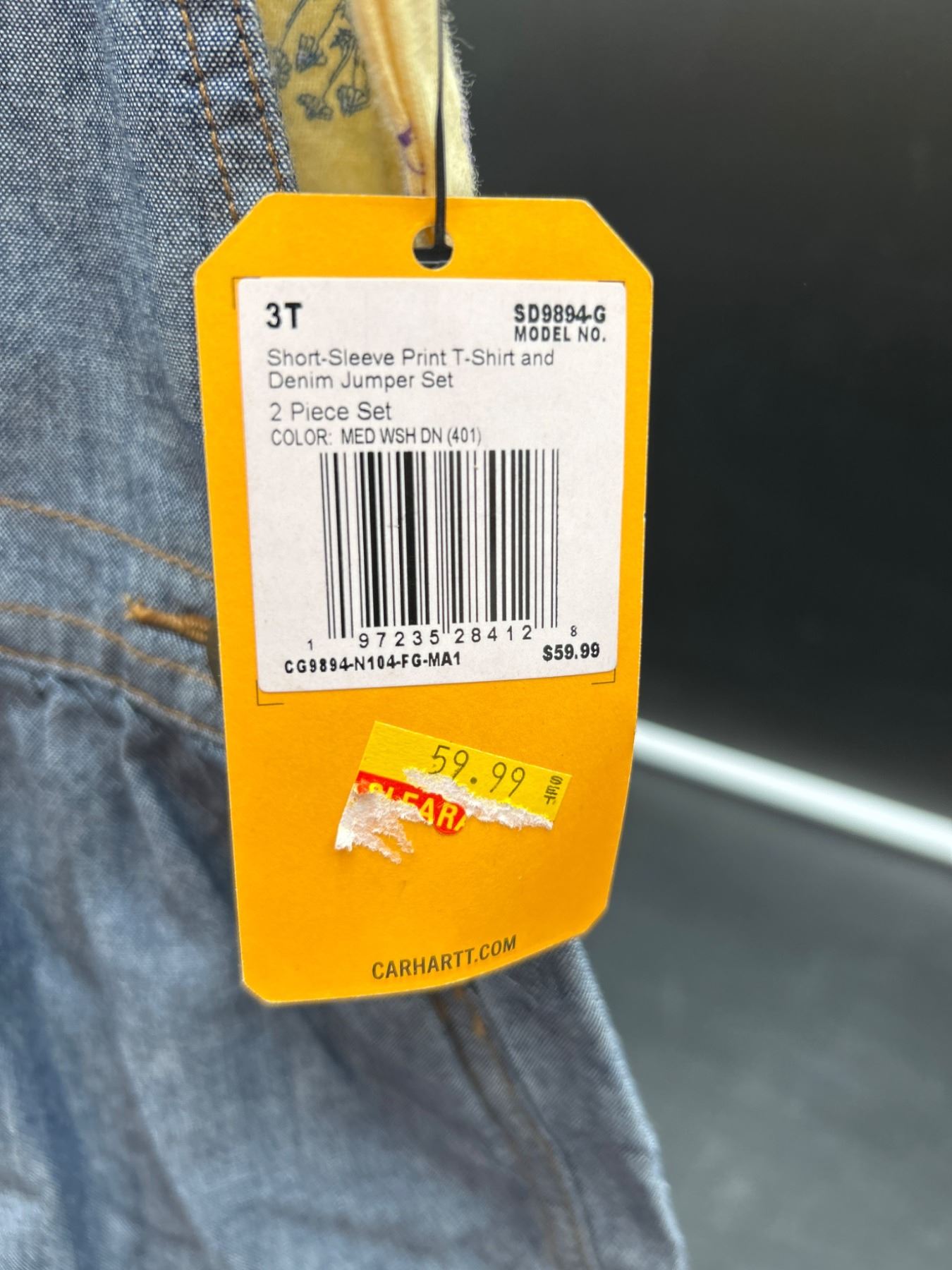 Carhartt 3T Short Sleeve T-Shirt and Denim Jumper Set