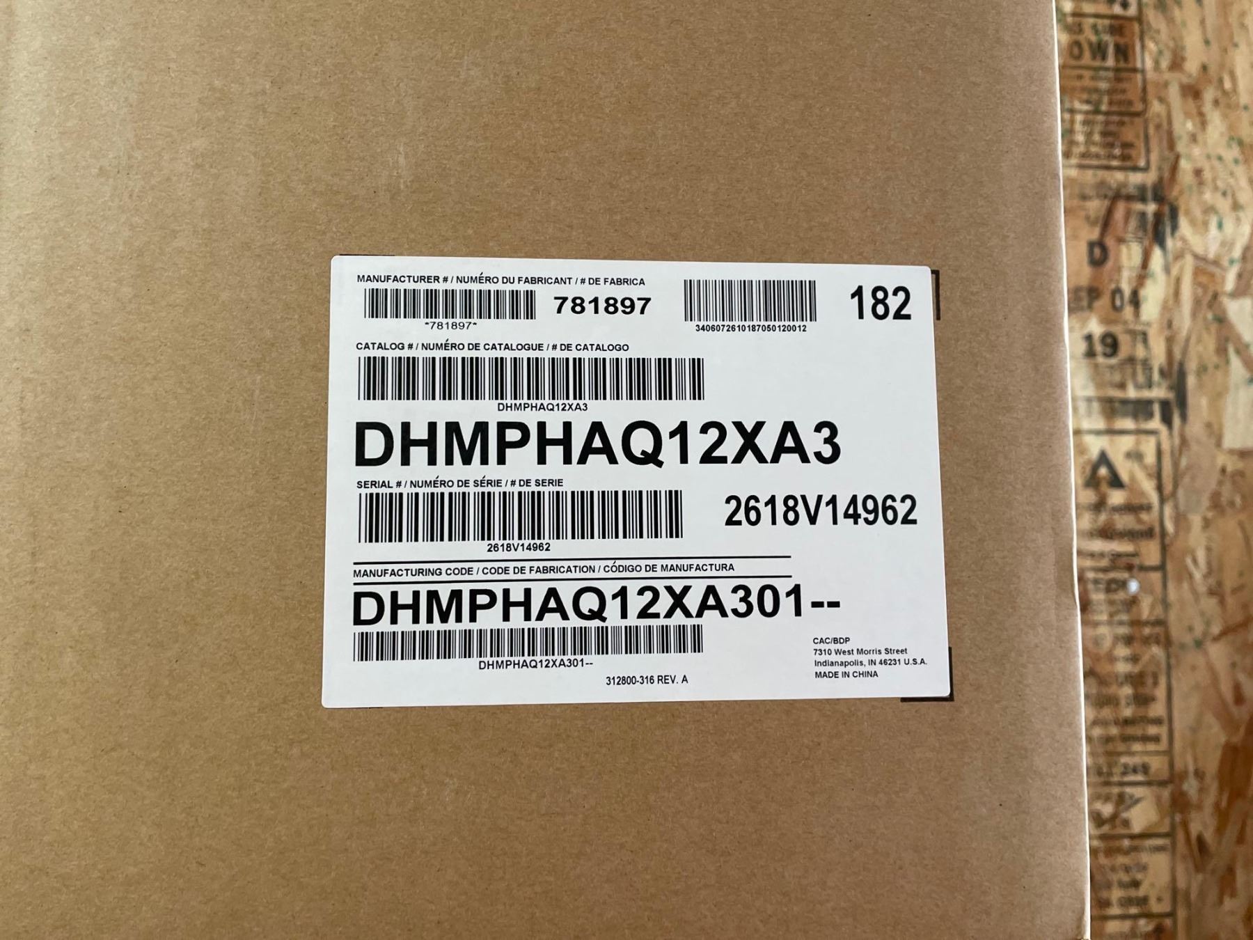 Carrier Ductless System Indoor Unit DHMPHAQ12XA3