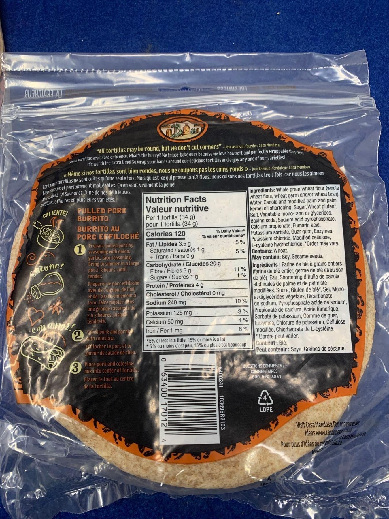 Casa Mendosa Tortillas-Whole Wheat (5 x 340g)