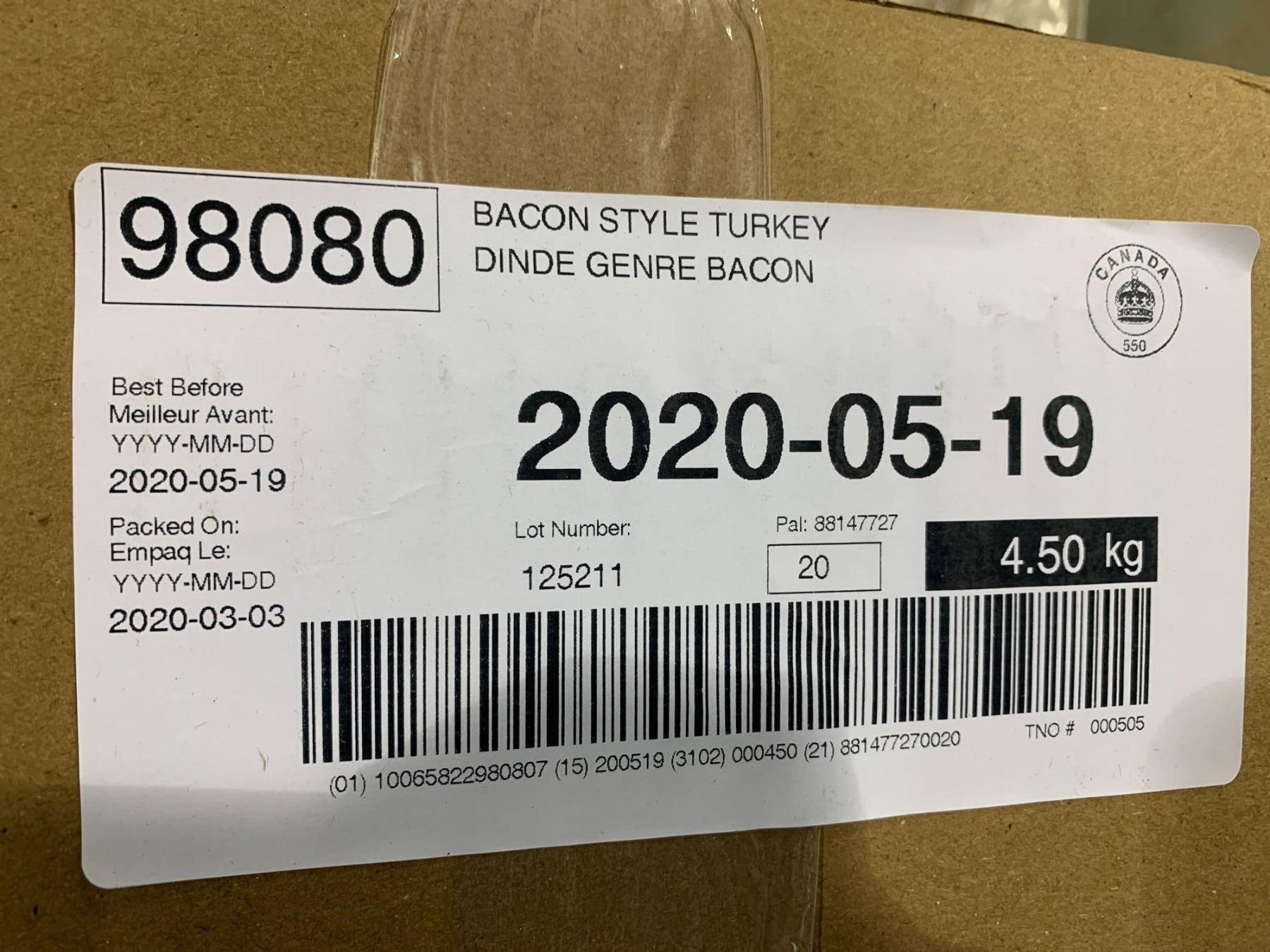 Case Lot of Butterball turkey bacon 12 x 375g