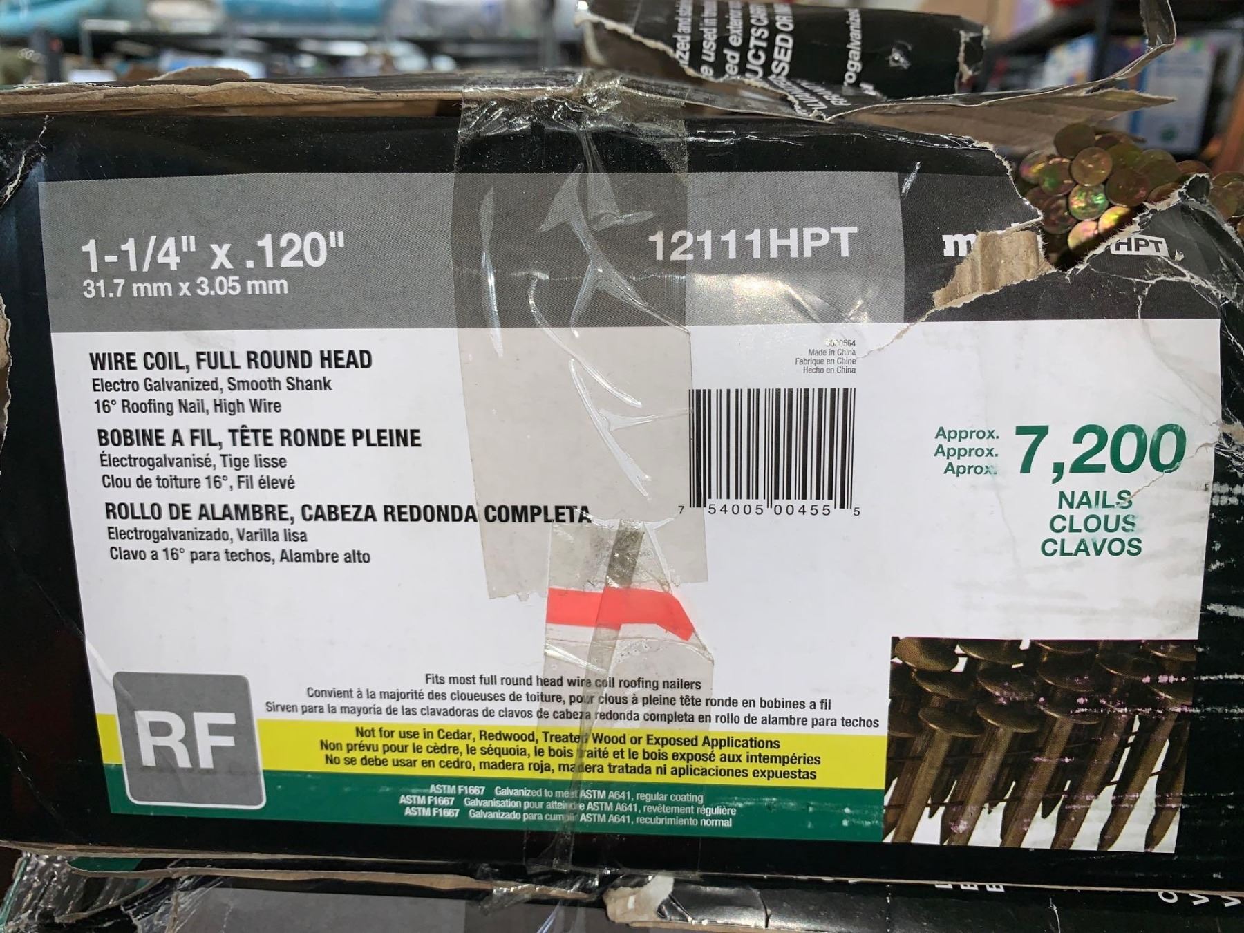 Case lot of 1 1/4 inch round head wire coil 7200 count