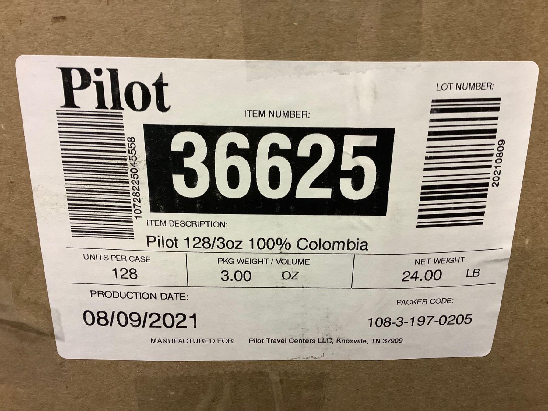 Case lot of 100% Columbian Coffee 128 count x 3 ounce