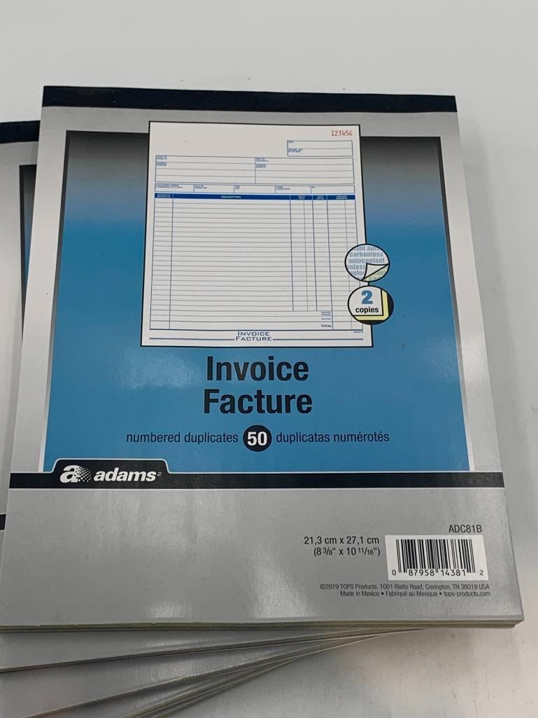 Case lot of Adams numbered Invoice Books 5 x 50