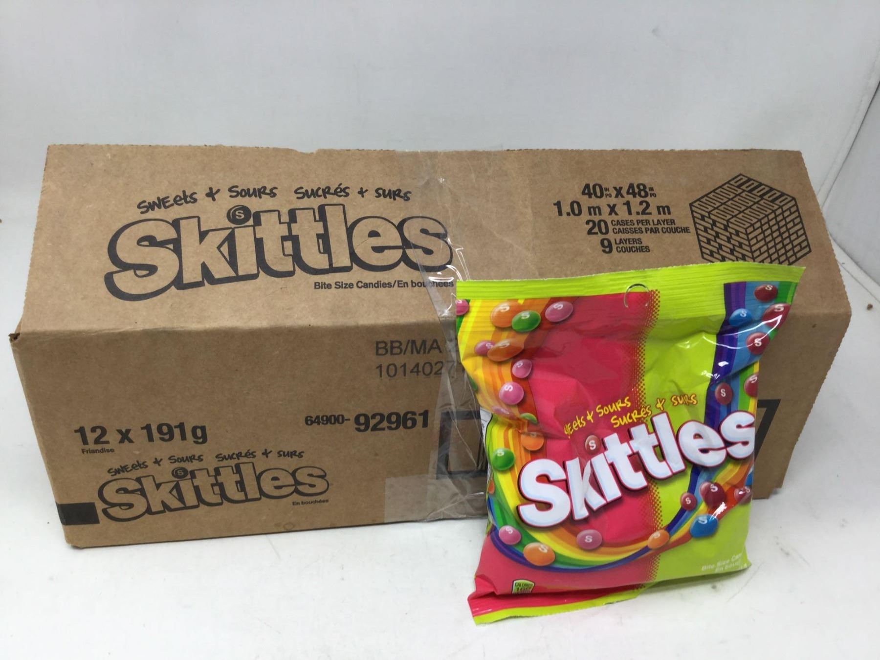 Case lot of Skittles sweets and sour 12 x 191g