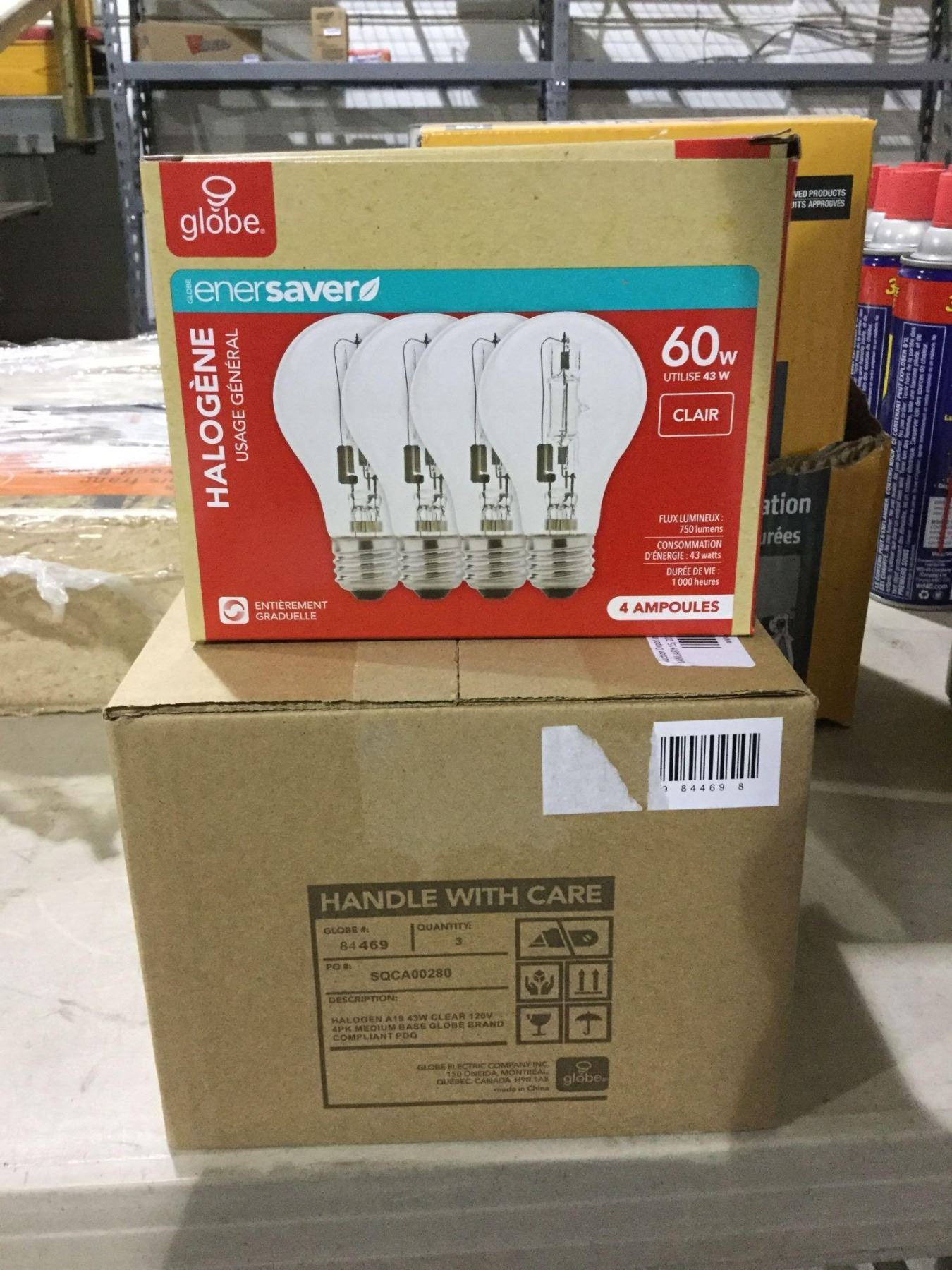 Case of 3 Globe Halogen 60W Bulbs 4-Pack