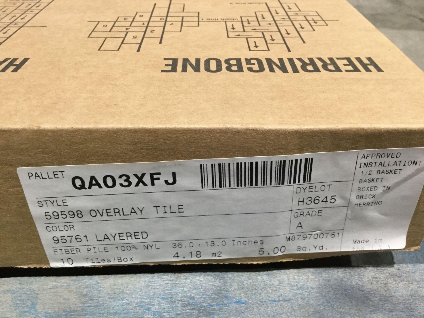 Case of Carpet Tile Overlay (10- 36inch x 18 inch)