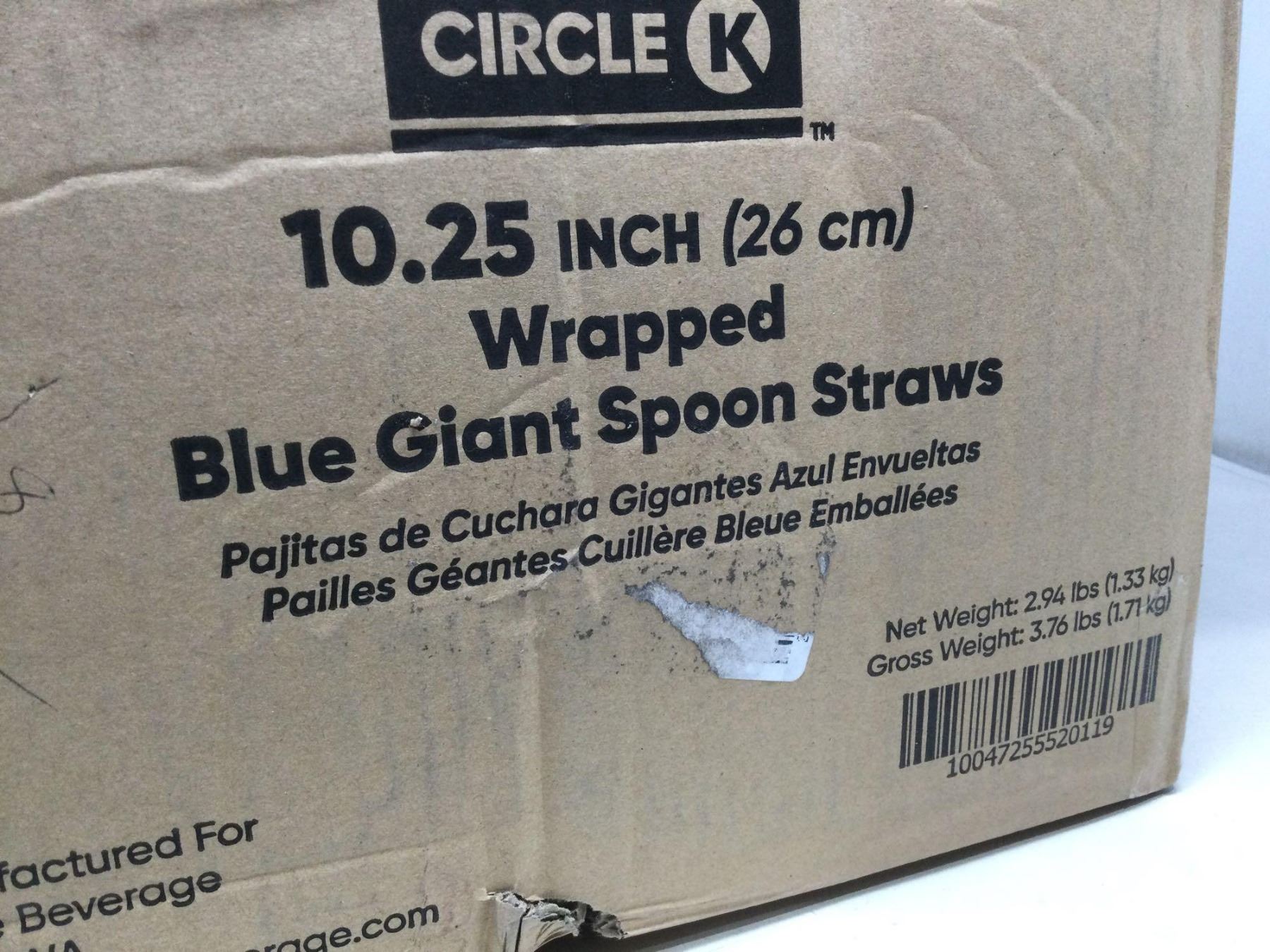 Case of Circle K 10.25in wrapped Blue Giant Spoon Straws
