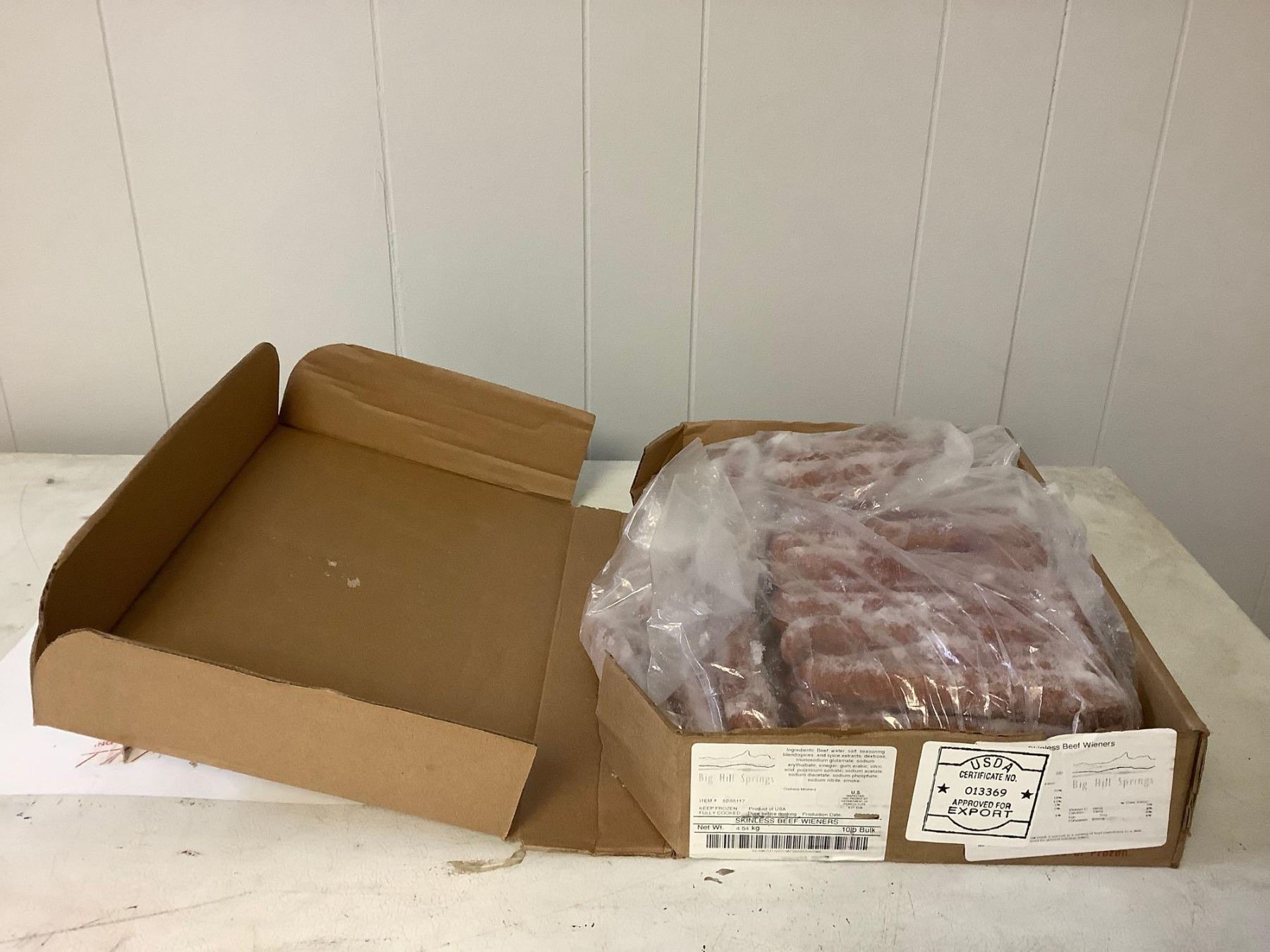 Case of Frozen Big Hill Springs Skinless Beef Wieners (4.54kg)