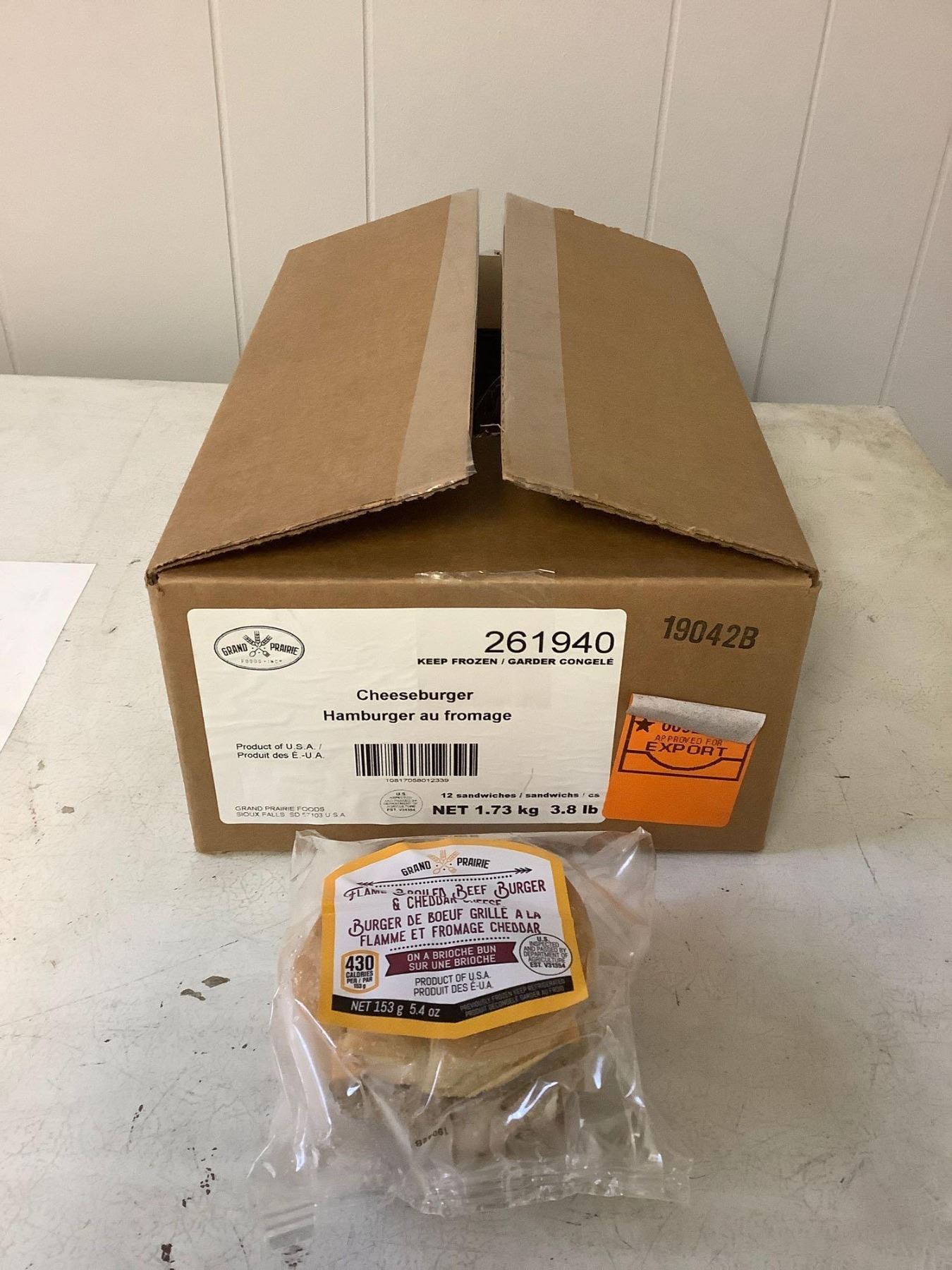 Case of Frozen Grand Prairie Cheeseburgers 12/CS (1.73kg)