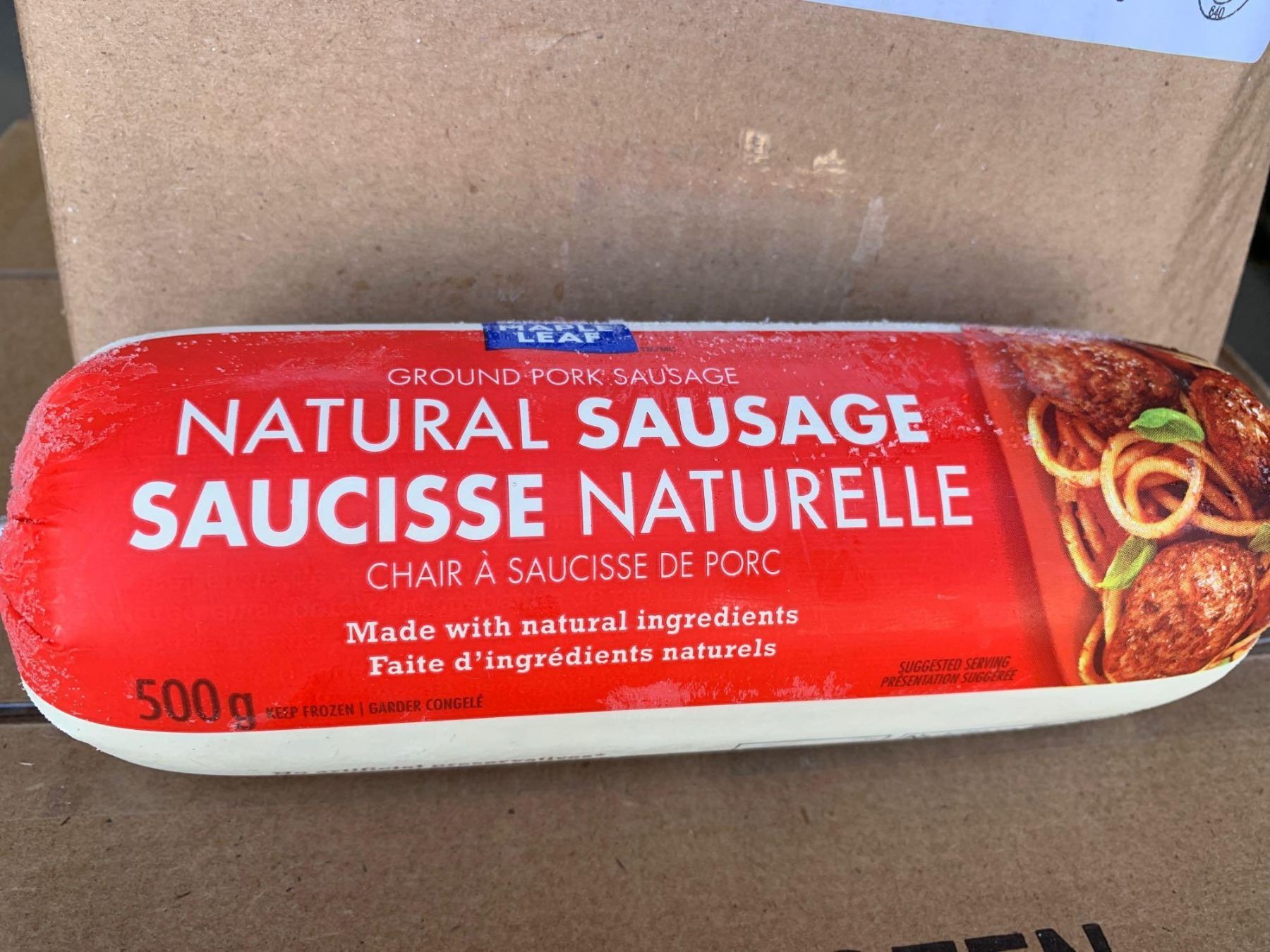 Case of Frozen Maple Leaf Ground Pork Sausage (12 x 500g)