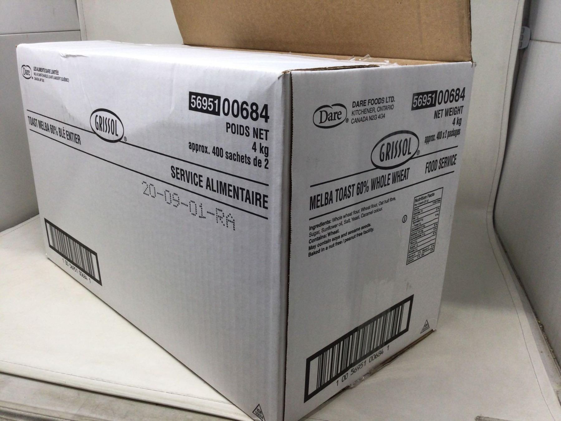 Case of Grissol Whole Wheat Melba Toast (400pks of 2)