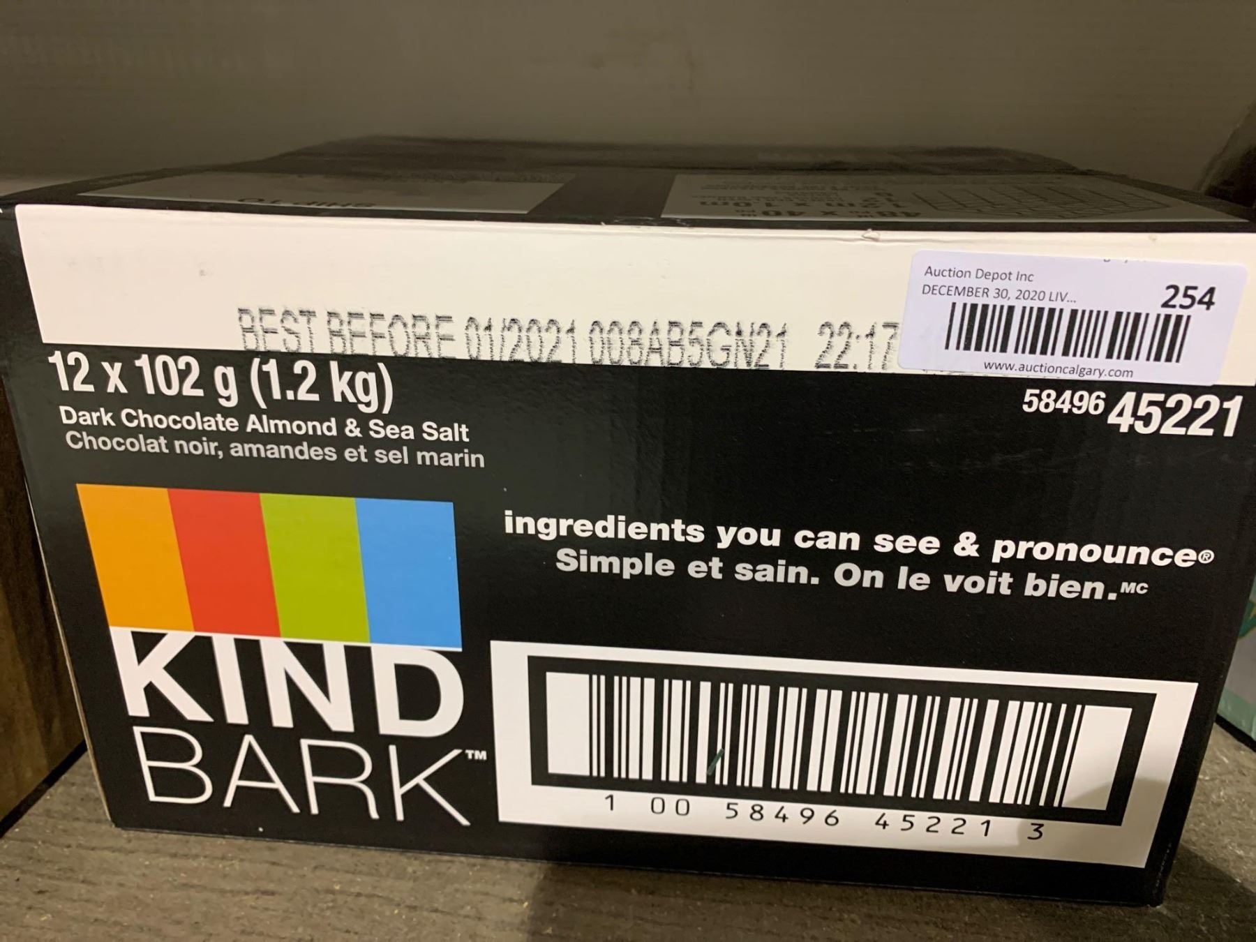 Case of Kind Bark Dark Chocolate Almond and Sea Salt Snack (12 x 102g)