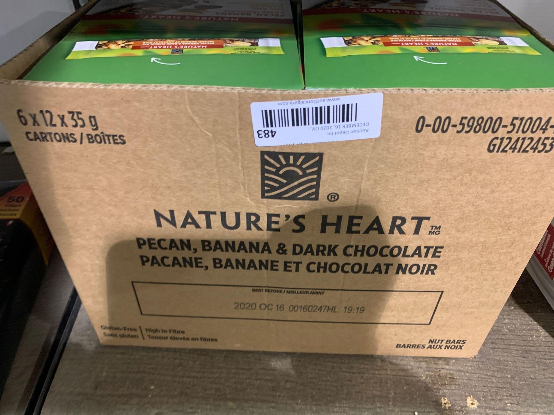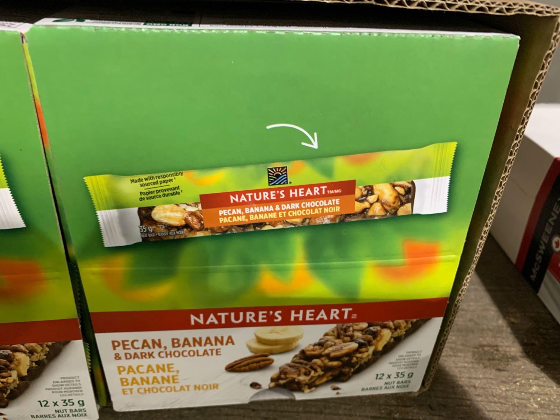 Case of Nature's Heart Pecan, Banana Dark Chocolate Nut Bars (6 x 12 x 35g)