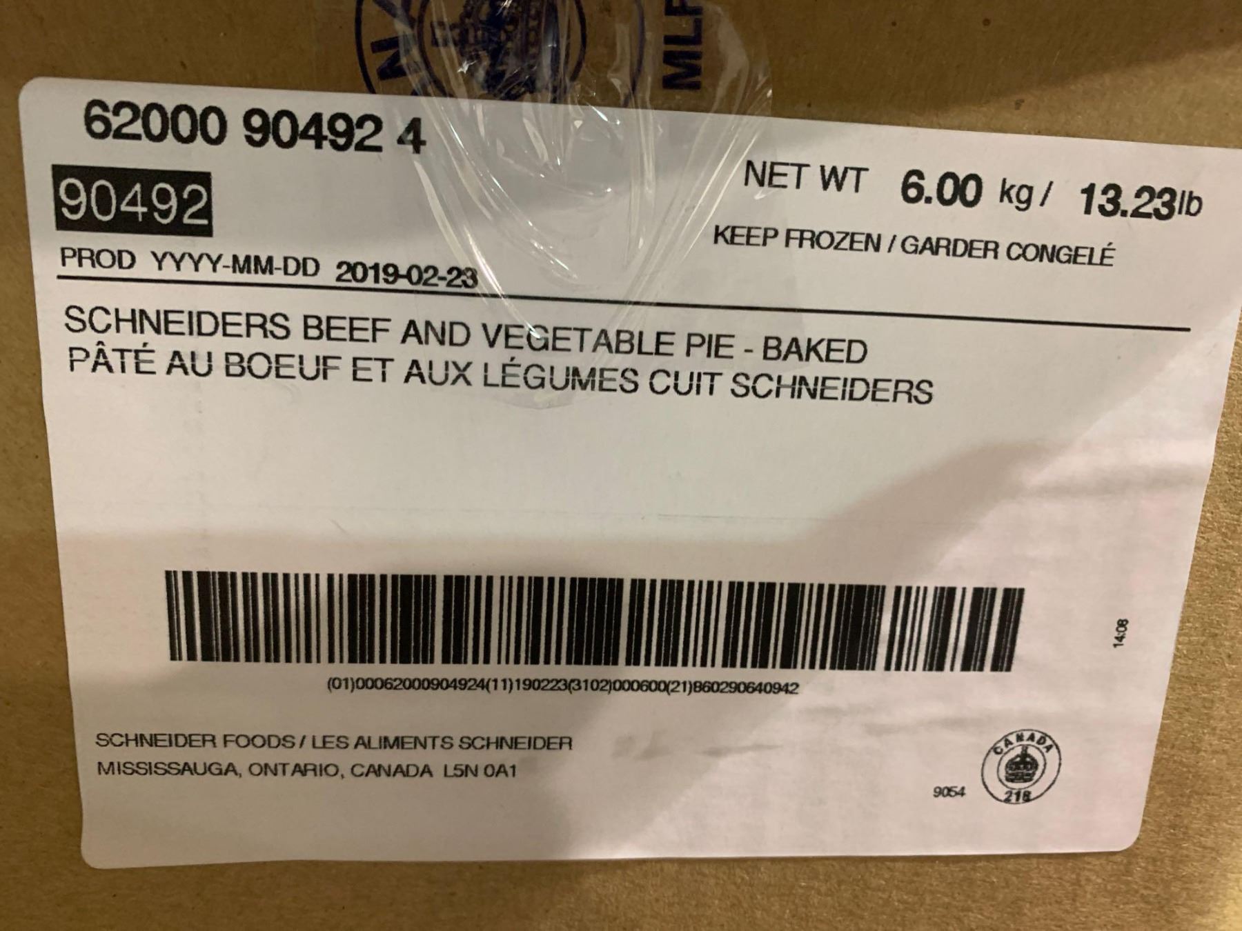 Case of Schneiders Beef and Vegetable Baked Pie (6kg)
