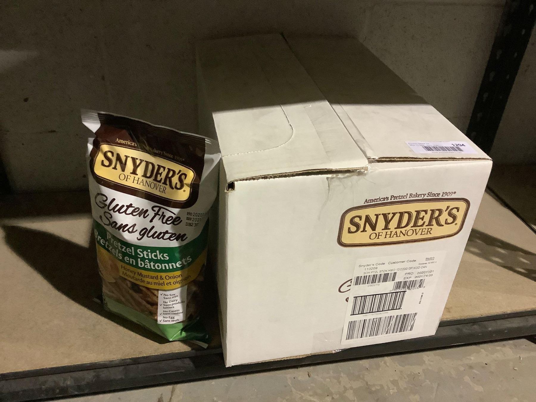 Case of Snyders Honey Mustard and Onion Pretzel Sticks (12 x 220g)