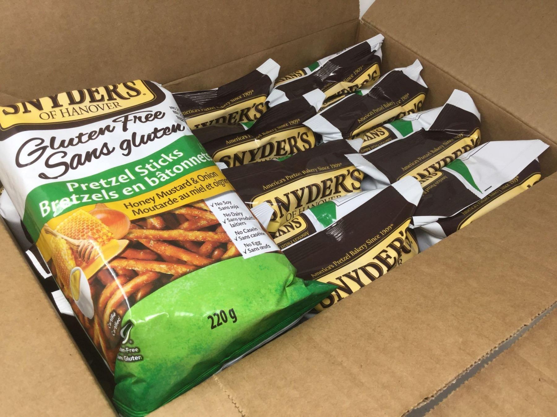 Case of SnydersGluten Free Honey Mustard & Onion Pretzel Sticks (12 x 220g)