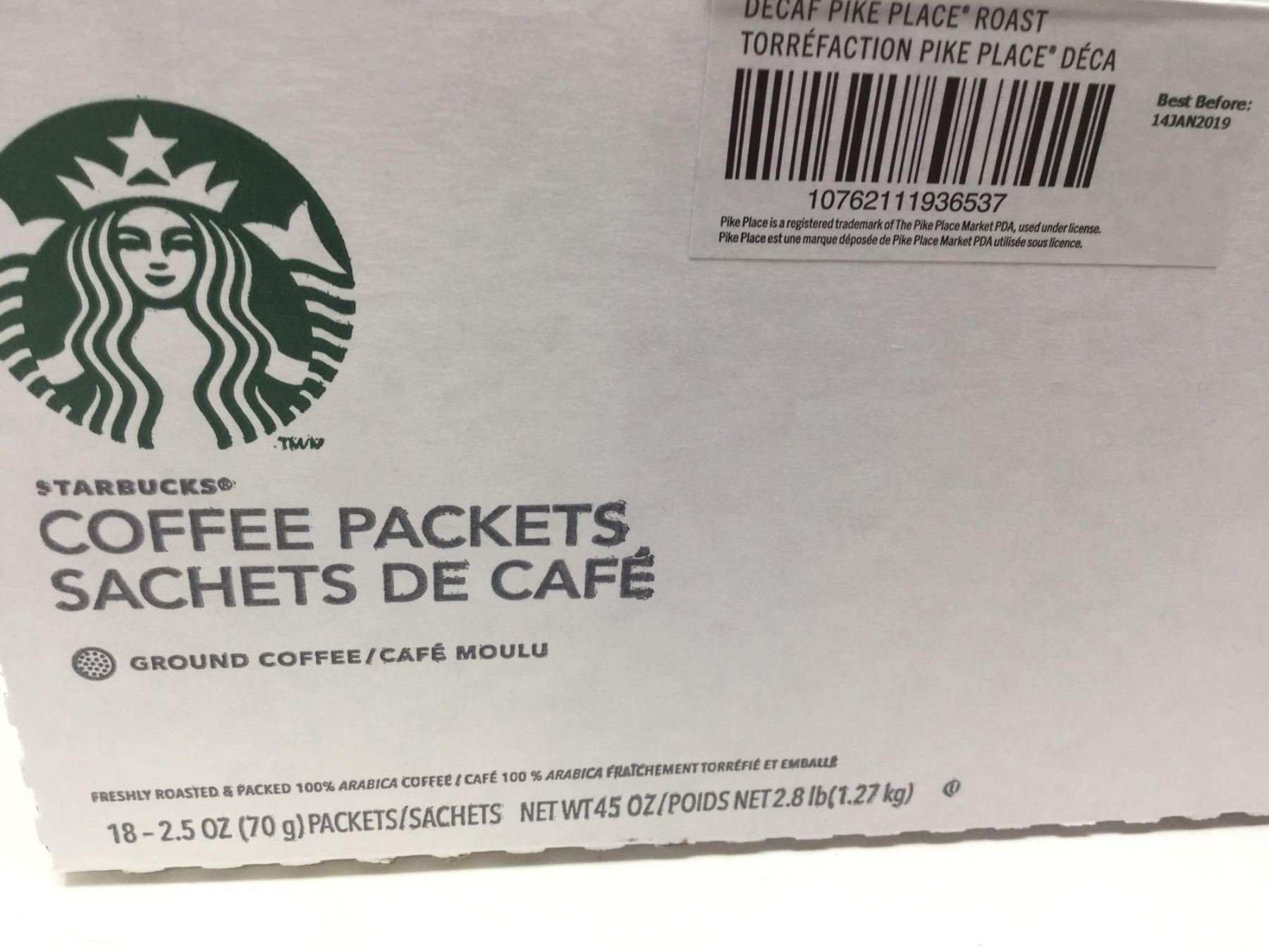 Case of Starbucks Pike Place Decaf Ground Coffee (18 x 2.5oz)