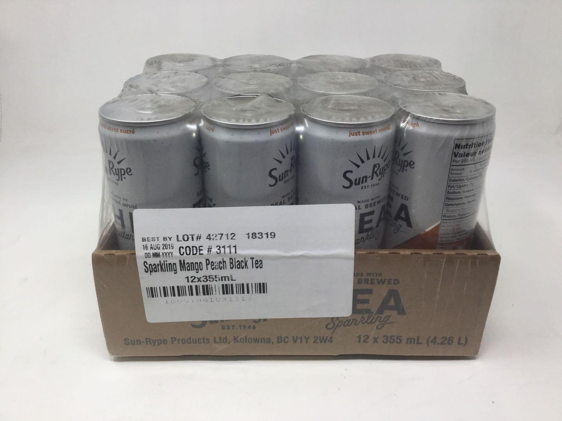Case of Sun-Rype Sparkling Mango Peach Black Tea (12 x 355ml)