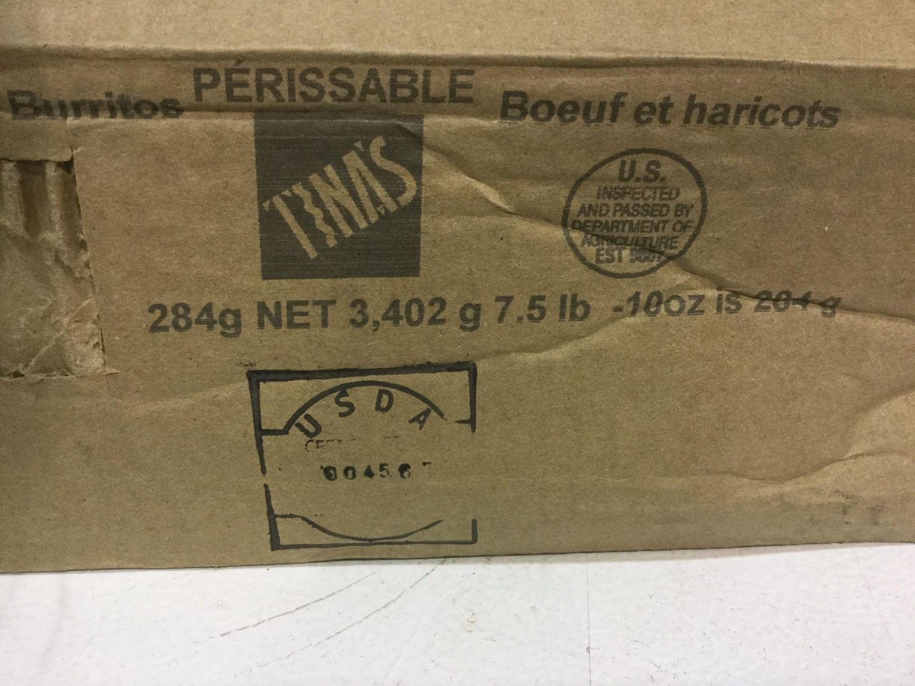 Case of Tina's Beef and Bean Burritos