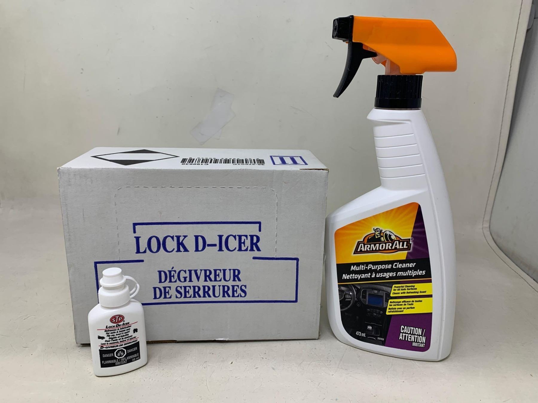 Case of lock deicer and armorall cleaner