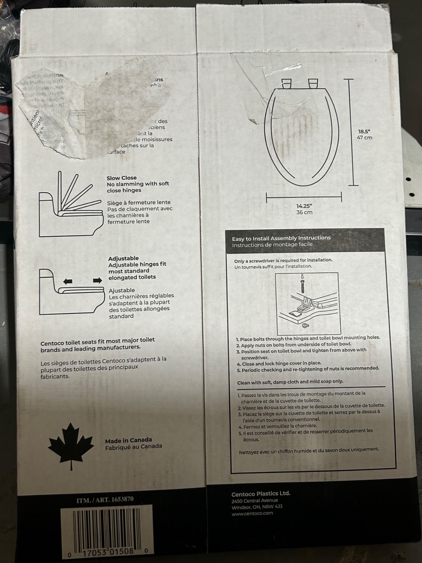 Centoco Elongated Toilet Seat with Adjustable Hinges and Antimicrobial Properties