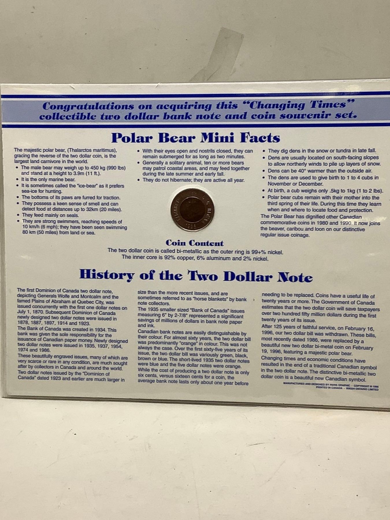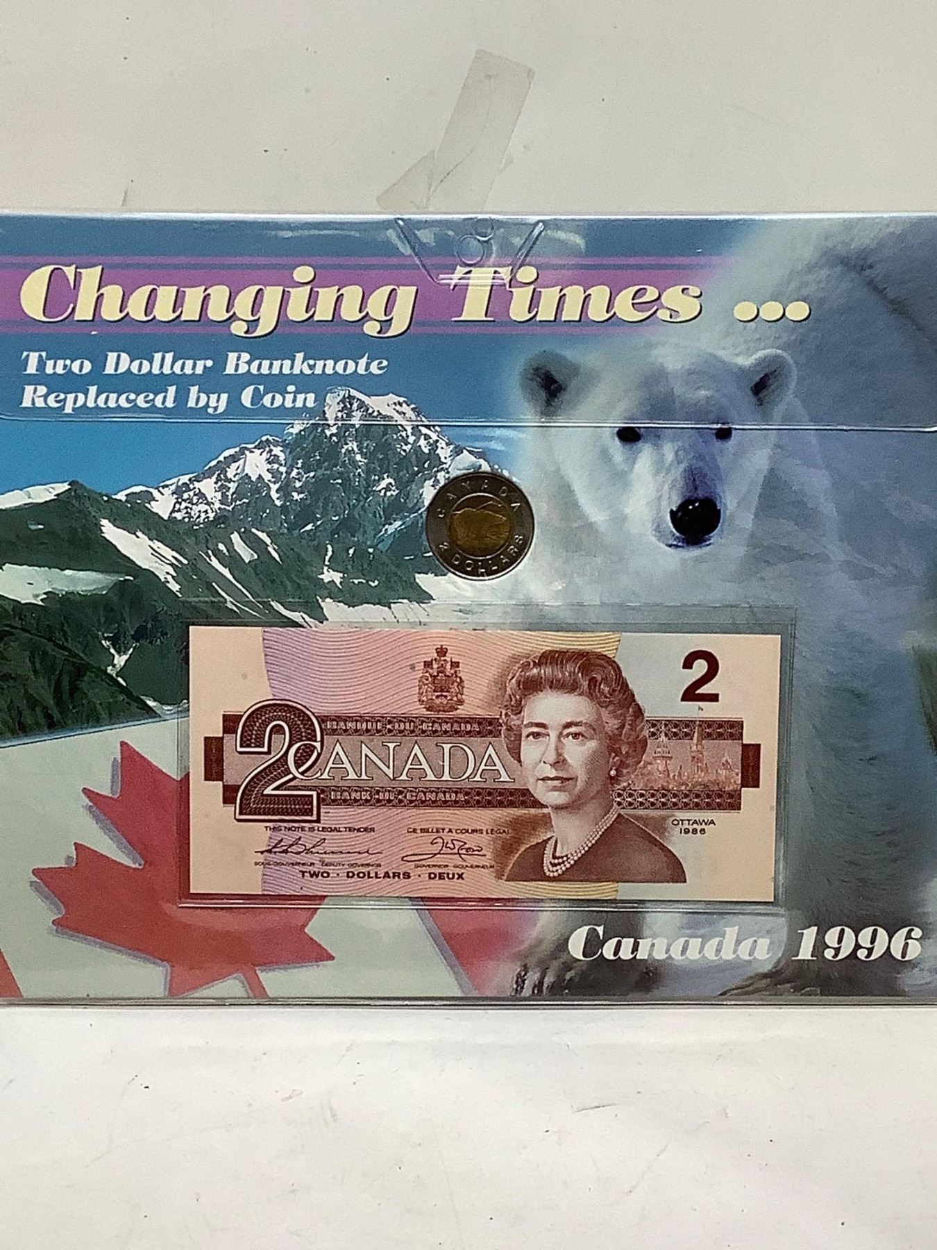 Changing Times Canada 2 dollar bill and twoonie commemorative set